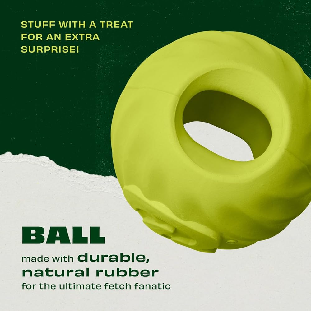 Bounce it, launch it, stuff it with treats—this ball does it all! Made from natural rubber, it's great for even the toughest of pups and dishwasher safe for easy cleaning.