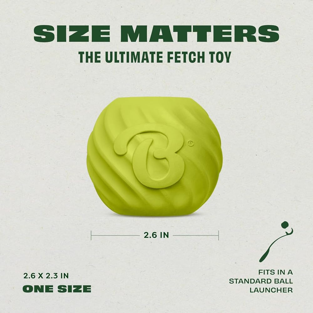 PERFECT FOR FETCH: This ball has an unpredictable bounce and fits in a standard ball-launcher when it's time to go long.