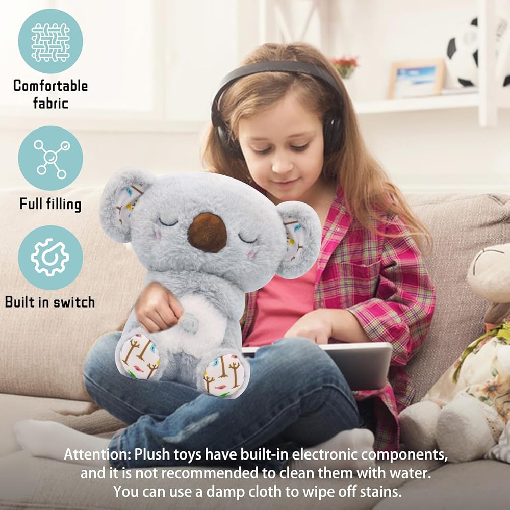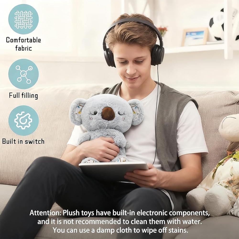 Breathing Stuffed Animal, Anxiety Relief Koala, No Up Down Breathing Float Function, Mush Plushies for Anxiety and Sleep, Four Gear Adjustment, Volume Control, with Music Lights