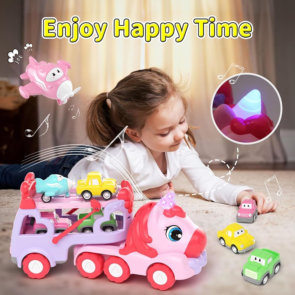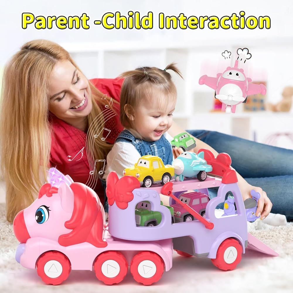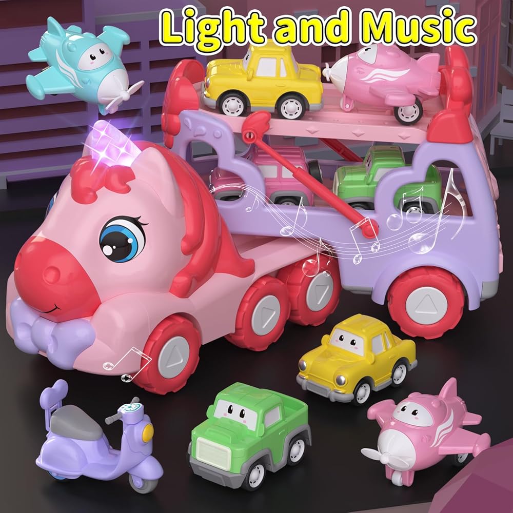 Toys for 1 2 3 Year Old Girl, 7-in-1 Carrier Truck with Light & Music, Toddler Girl Toys Age 1-3 2-4, 1 + 2 + 3 Year Old Girls Birthday Gifts Christmas Easter