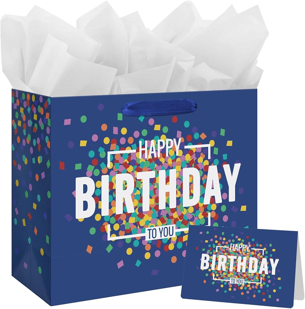 【Package Includes】Package Includes 1 large birthday gift bag, 3 tissue paper, 1 greeting card for easy wrapping, perfect for a variety of birthday party wrapping needs.