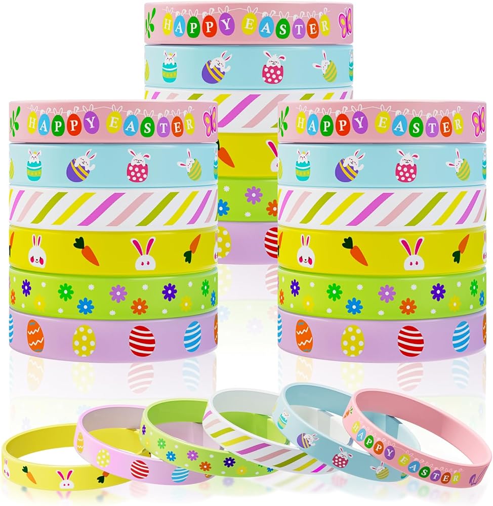 Ideal Easter Gifts: Our rubber bracelets have a unique design and come in a set of 30, making them ideal for gift exchanges, Easter parties, or simply as a token of love to someone special. Easter gifts easter gifts for kids easter gifts for toddlers easter gifts for babies easter gifts bulk easter gifts for girls baby easter gifts toddler easter gifts easter gifts boys 8-12 easter gifts for teen girls teens easter gifts easter kids gifts easter goodie bag stuffers easter egg fillers small.
