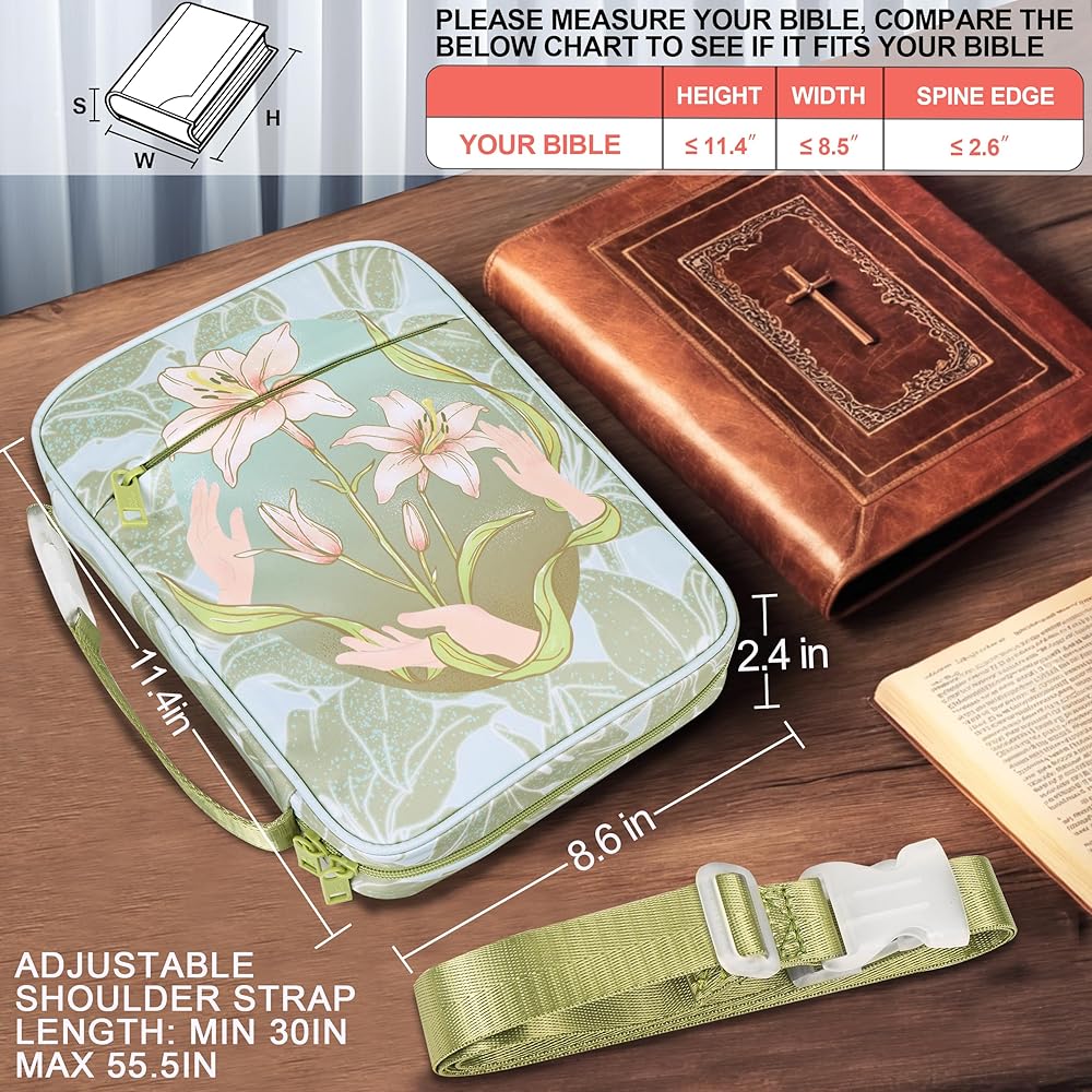 【Versatile All-Day Carry】Designed as both a Bible case and everyday bag, it converts from a sleek handbag to a practical tote. The structured base holds heavy books upright, while soft lining protects screens and scriptures. Use it for study groups, weekend trips, or as a polished accessory for work.