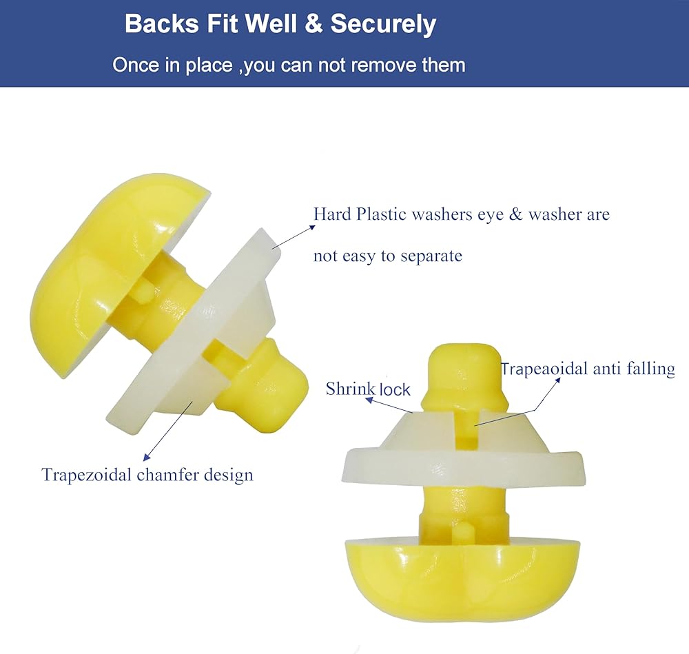 Safety Washers : The washers provided are hard plastic,not flimsy plasti,stay secure.it is easy to lock in place and stay secure. It's safer. Eyes are more complete and firm. Attention: please make sure that you have it located exactly where you want it in your project before proceeding.