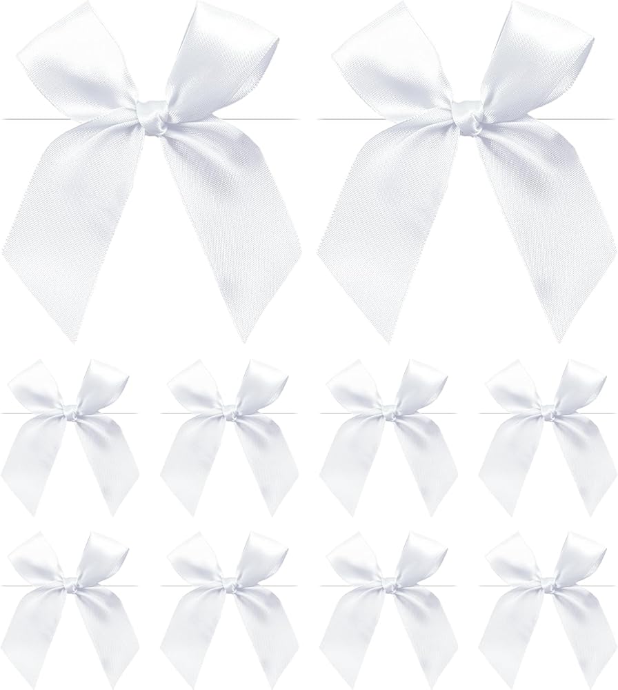 Come and choose our 50pcs Pre-Tied White Ribbon Satin Bows Christmas Satin Ribbon Bows with Twist Ties and Double Side Dots for DIY Crafts Gift Appliques Wedding Party Sewing Scrapbooking