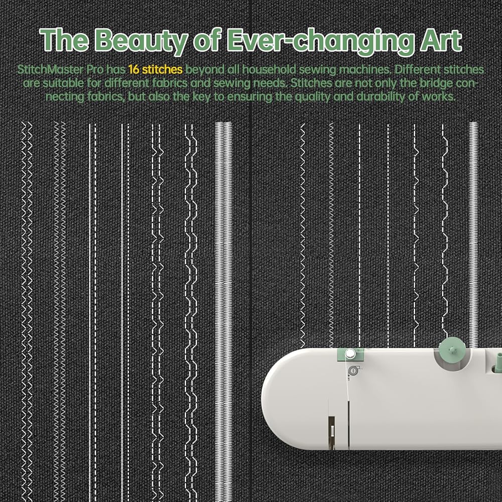 16 types of stitches of the waltz: The StitchMaster Pro offers 16 types of stitches to choose from, covering various sewing effects and style needs. Whether you need basic straight lines, exquisite decorative stitches, or practical buttonholes, every stitch shows exquisite, satisfying your endless pursuit of perfection
