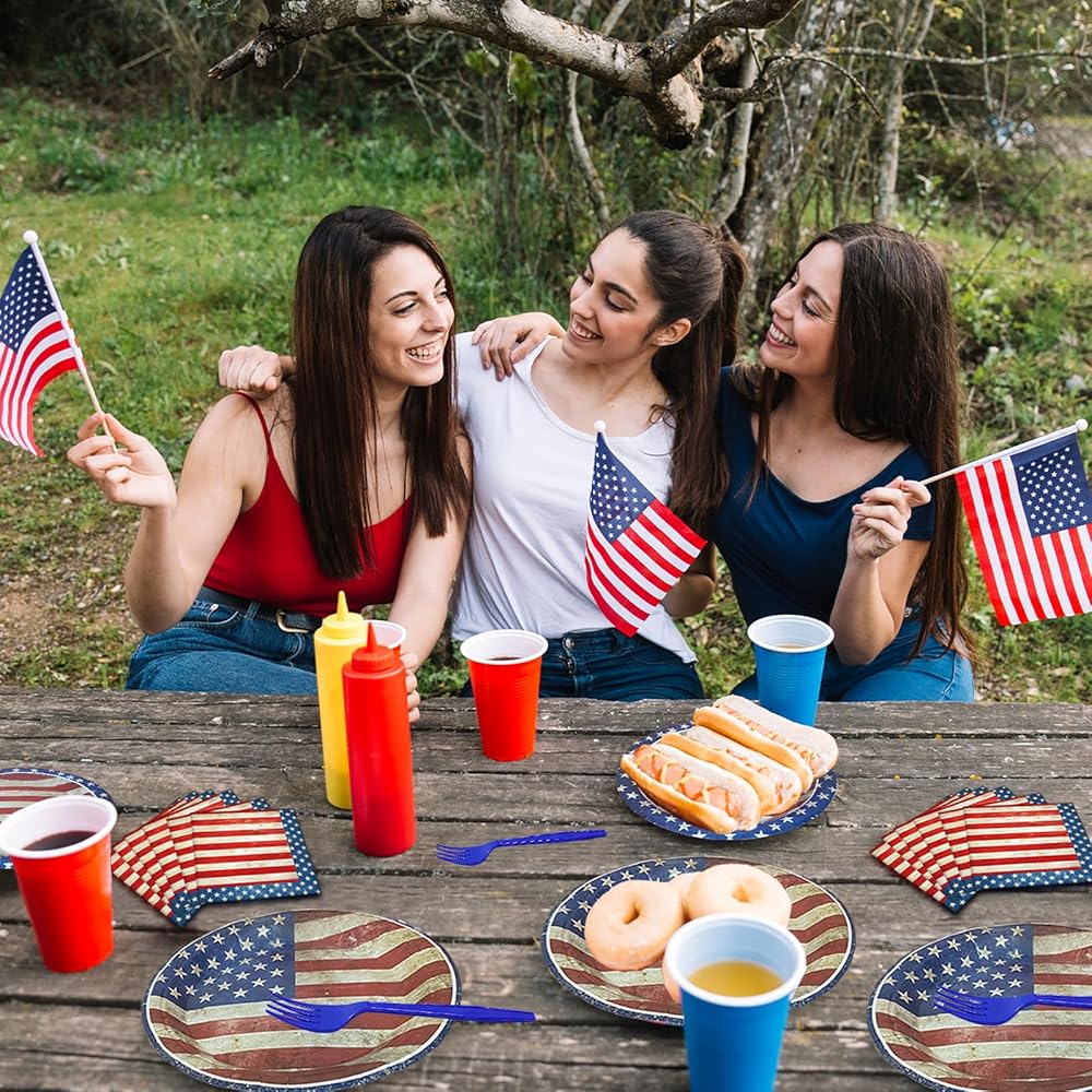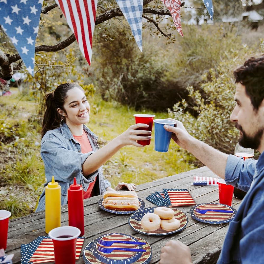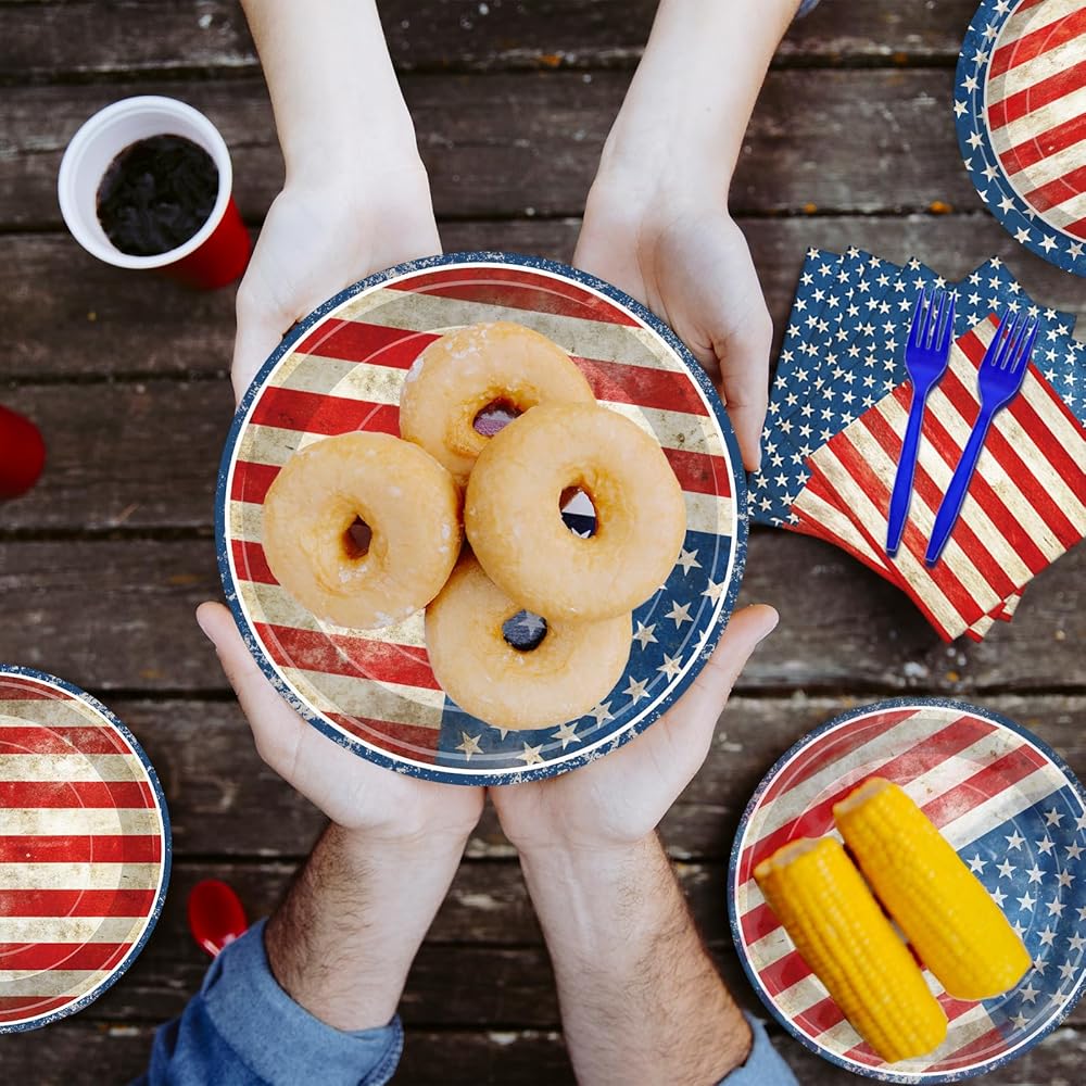 STURDY & HIGH-QUALITY MATERIALS – Made from food-safe paper and plastic, these plates are strong enough to hold different foods without getting soft or bending. The forks are comfortable to hold, and the napkins are thick and absorbent, helping to keep hands and tables clean.