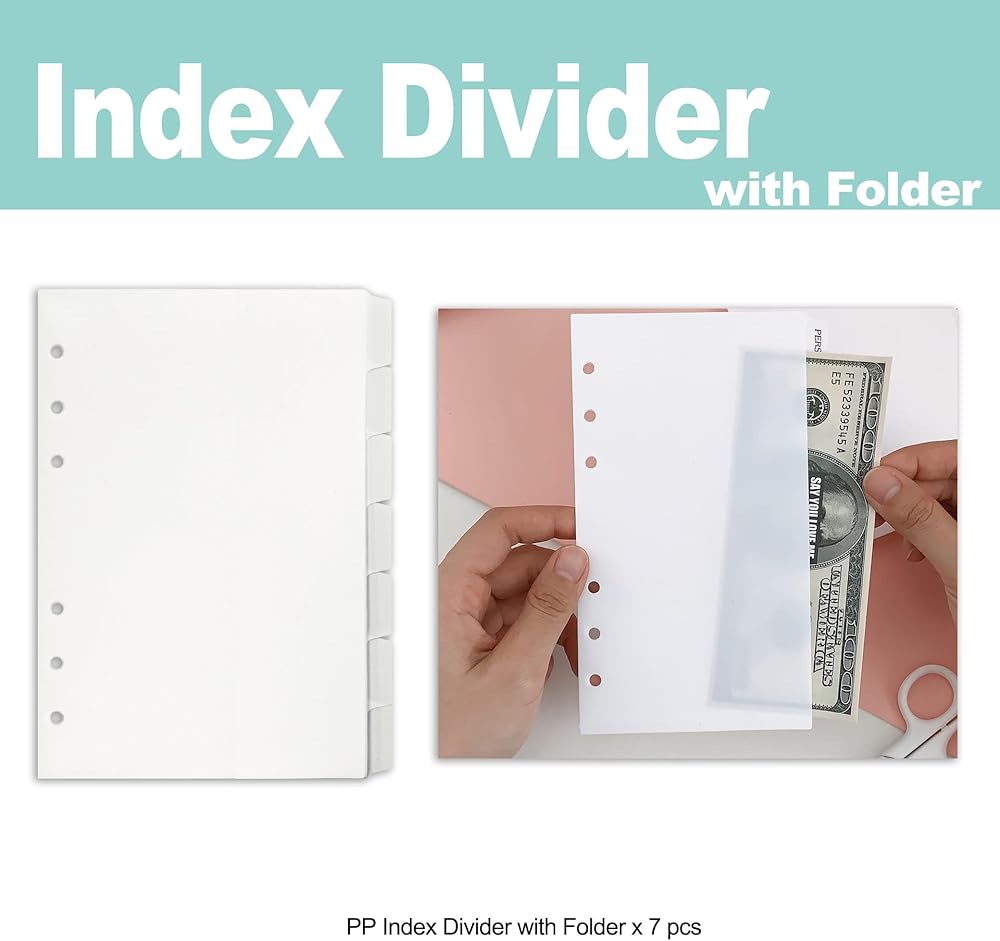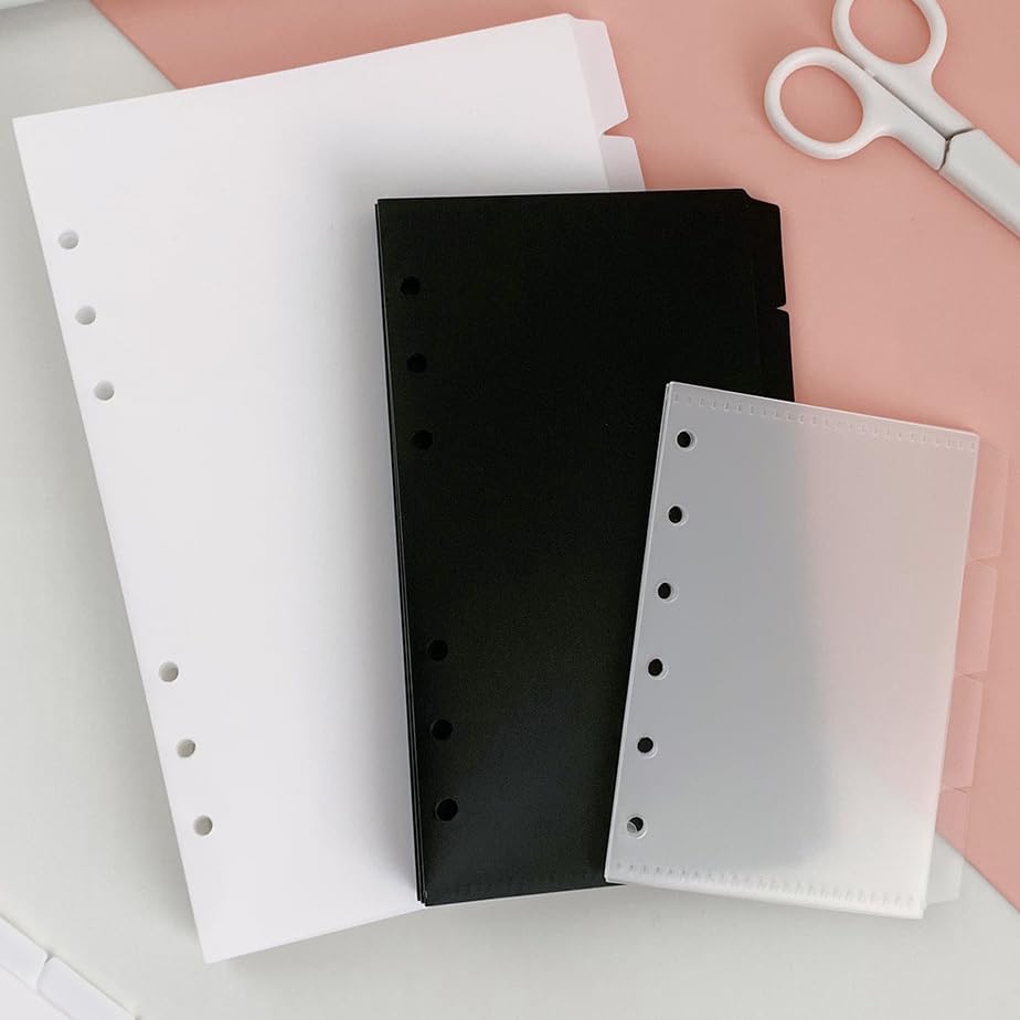 Zelten PP Binder Index Dividers with Folder & 4 sheets Tab Stickers for Personal Organizer (PP Black 7-Folder Tab, A5/6 Hole)