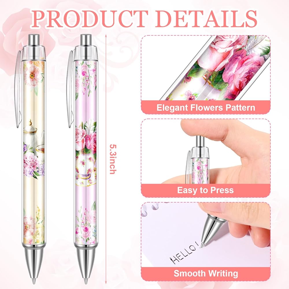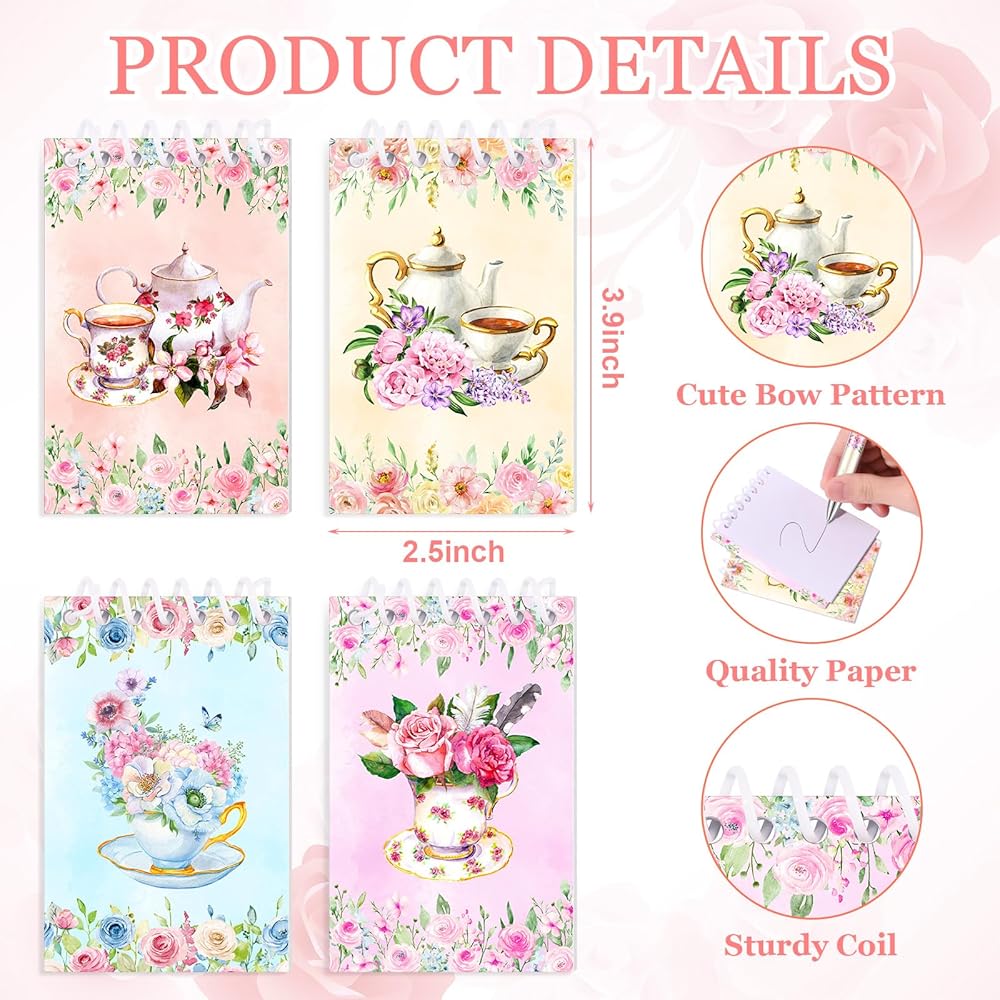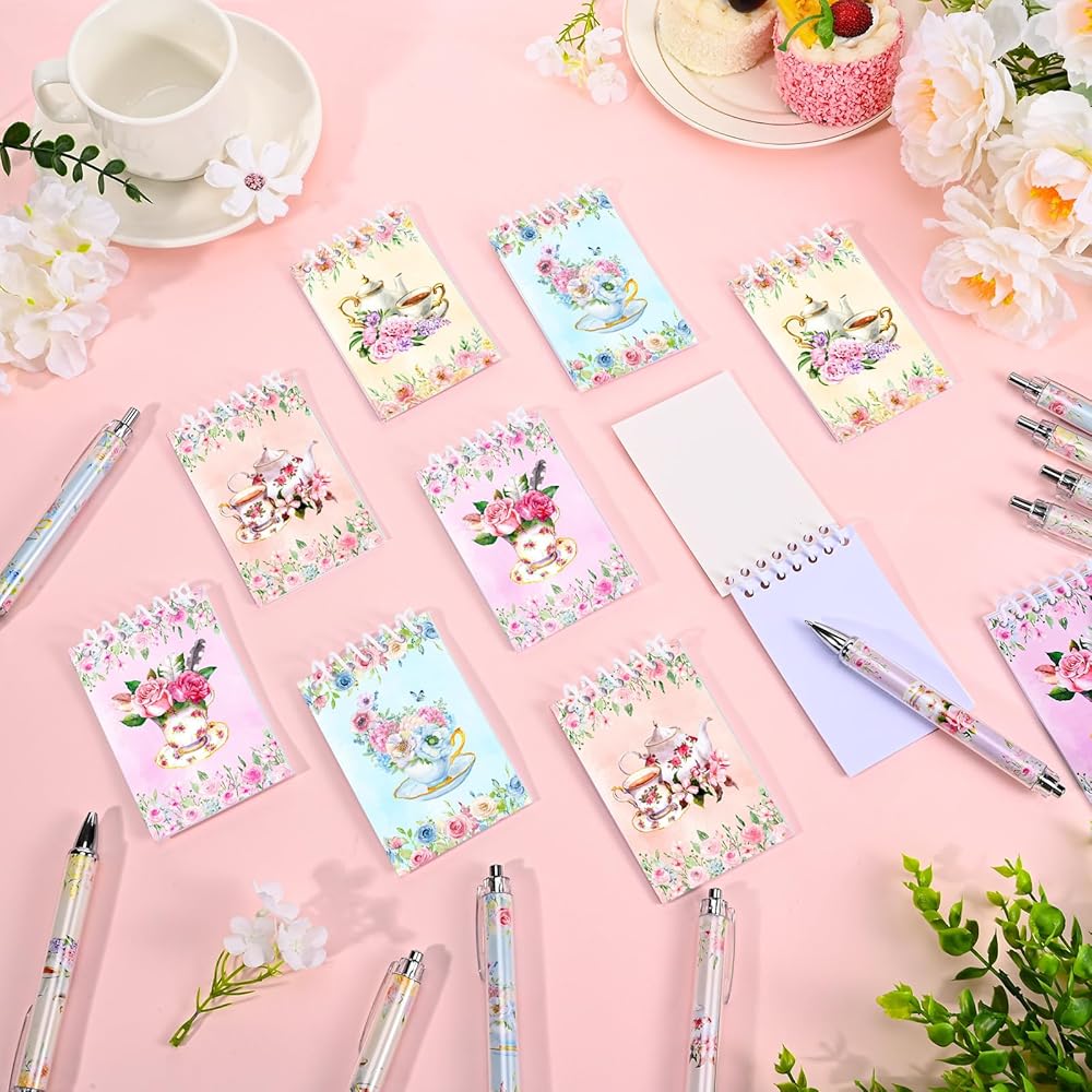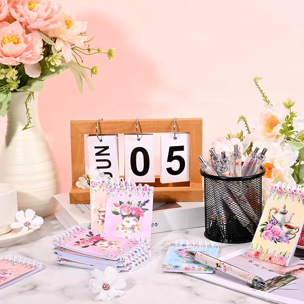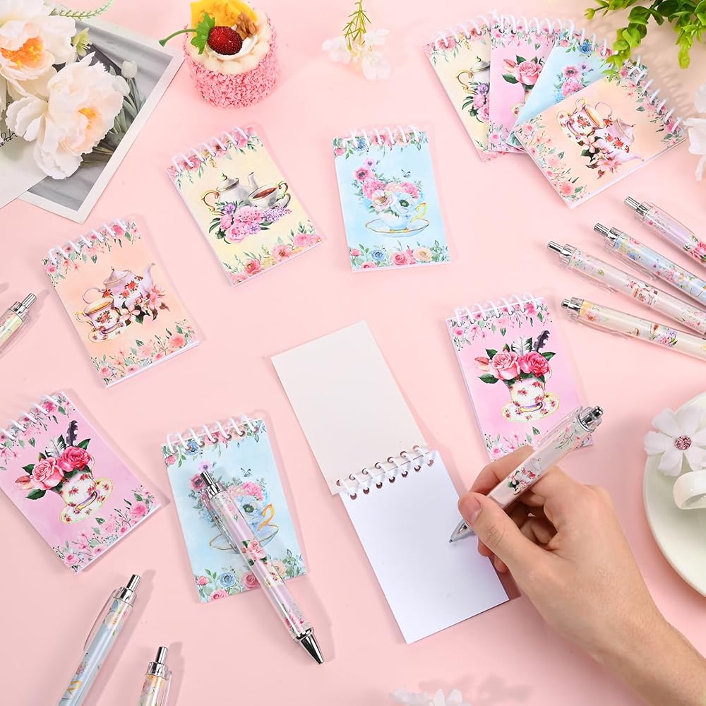 24 Pcs Mini Notepads with Floral Ballpoint Pens Spiral Notebooks Pens for Birthday Office Classroom Wedding Supplies