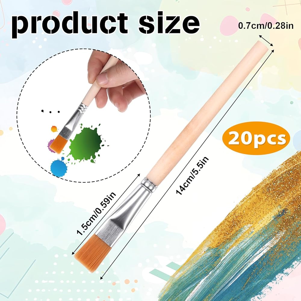 cobee 20 Pcs Wooden Handle Flat Paint Brushes, Craft Paint Brushes Small Paint Brushes, Multi-Purpose Cleaning Artist Brushes Painting Tools Glue Brushes Woodworking for Home DIY Adult