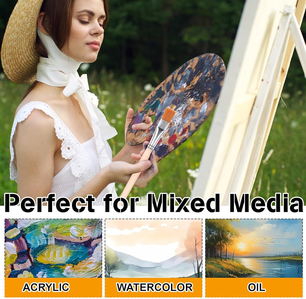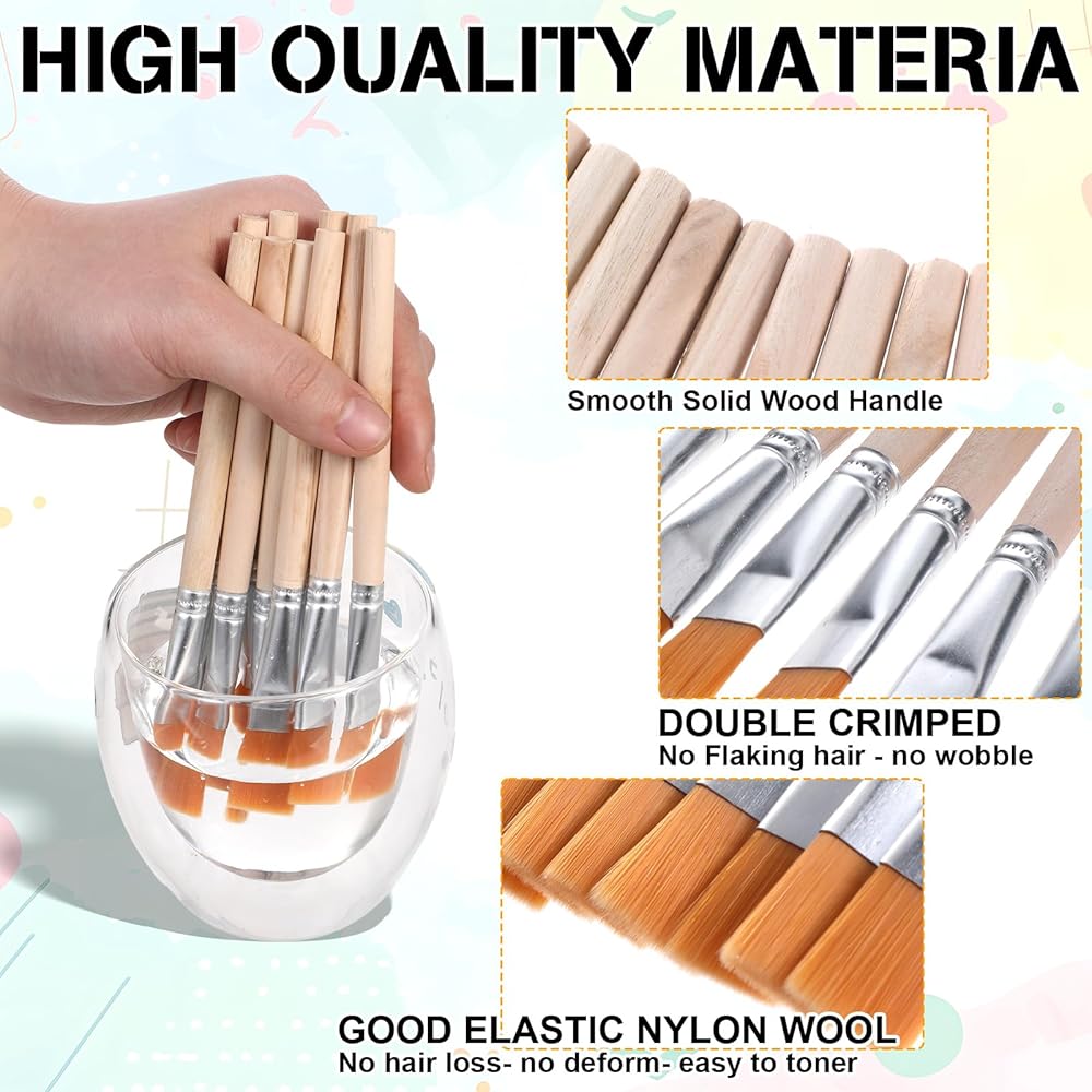 • 【Wide Usages】: These flat paint brushes are suitable for various media, including acrylic, watercolor, oil color, gouache, tempera, ink, and enamel. The universal shape meets the needs of all levels of painters, from beginners to experienced artists.