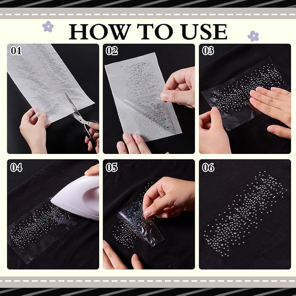 Quality Material: A beautiful motif that made of good quality clear color glass rhinestone crystals with smooth edges, they have great sparkle and shine, the hot melt adhesive is with strong viscosity, not easy to fall off, suitable for a wide range of flat fabric crafts.