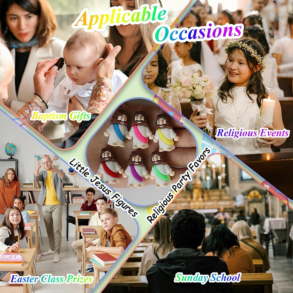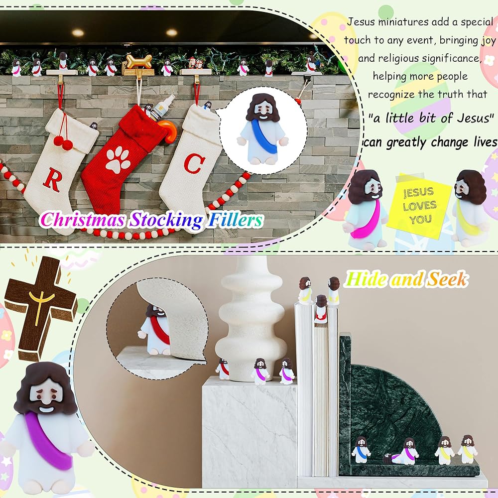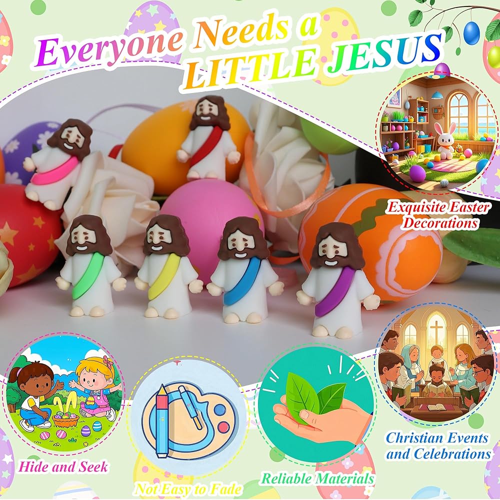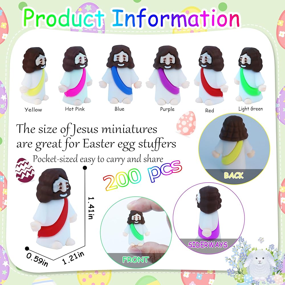 Versatile Party Favors: These ester Jesus miniatures are a great size, they make excellent baptism gifts, Sunday school rewards, Easter egg stuffers, Hide and Seek, bible study, Trunk or Treat event at church, religious activities, parade, or holiday parties. From church events to school projects, these Jesus toys add a special touch to your event, bringing joy and religious significance to any occasion