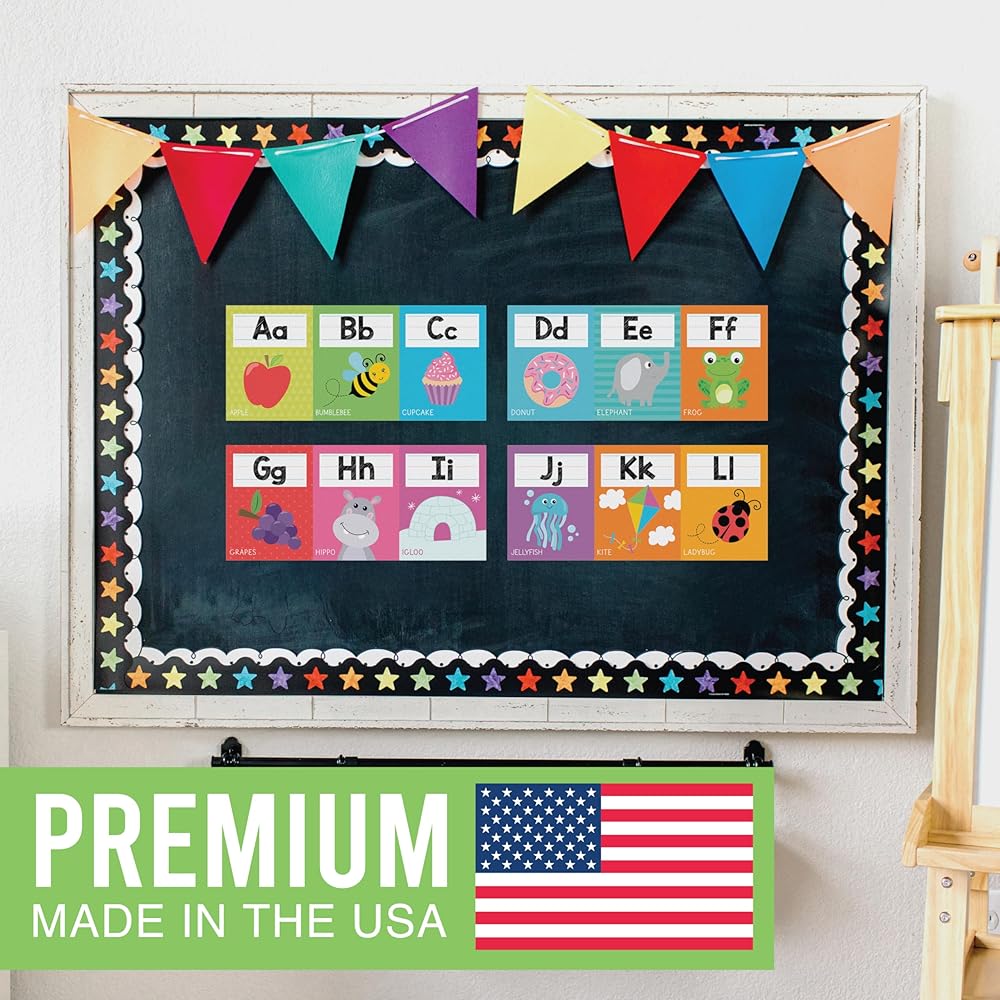 If You're Looking To Make Learning The Alphabet Fun And Easy; Then you need this alphabet bulletin board set for classroom because while other alphabet cards for classroom walls are made overseas, our abc posters for classroom walls are proudly USA made