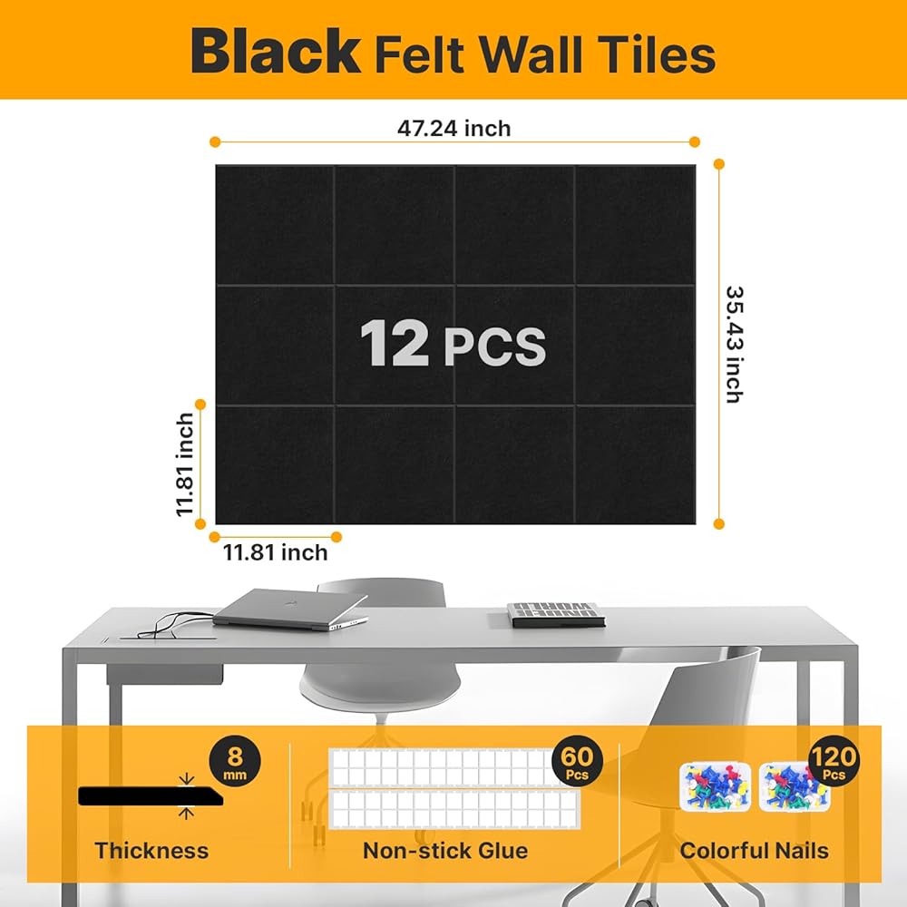 Valuable Package:Each package contains 12 pieces of 11.8"x11.8" grey felt wall tiles, 60 non-stick stickers and 2 boxes of nails (30 pieces per box). Can meet your daily needs