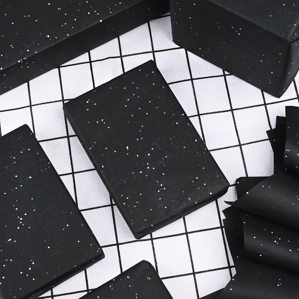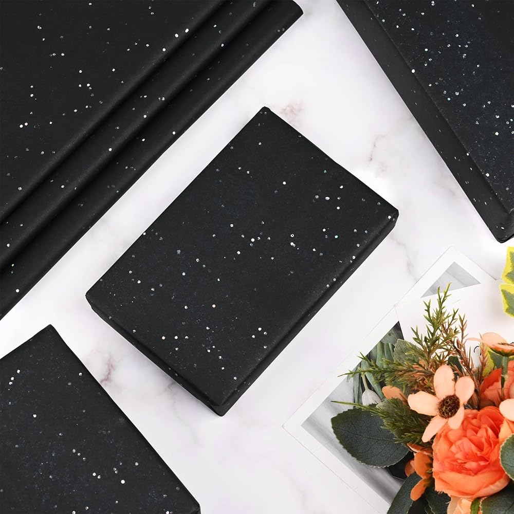 【SIZE INFORMATION】: Each black glitter tissue paper measures about 20 * 14 inches, fitting most sizes of gift boxes, and they can be easily cut into the proper size at will.