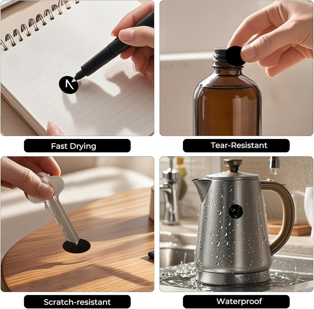 Waterproof: Circle stickers are resistant to water, which makes them suitable for use in bathrooms, kitchens and other wet environments. The stickers can also be easily written on with markers.
