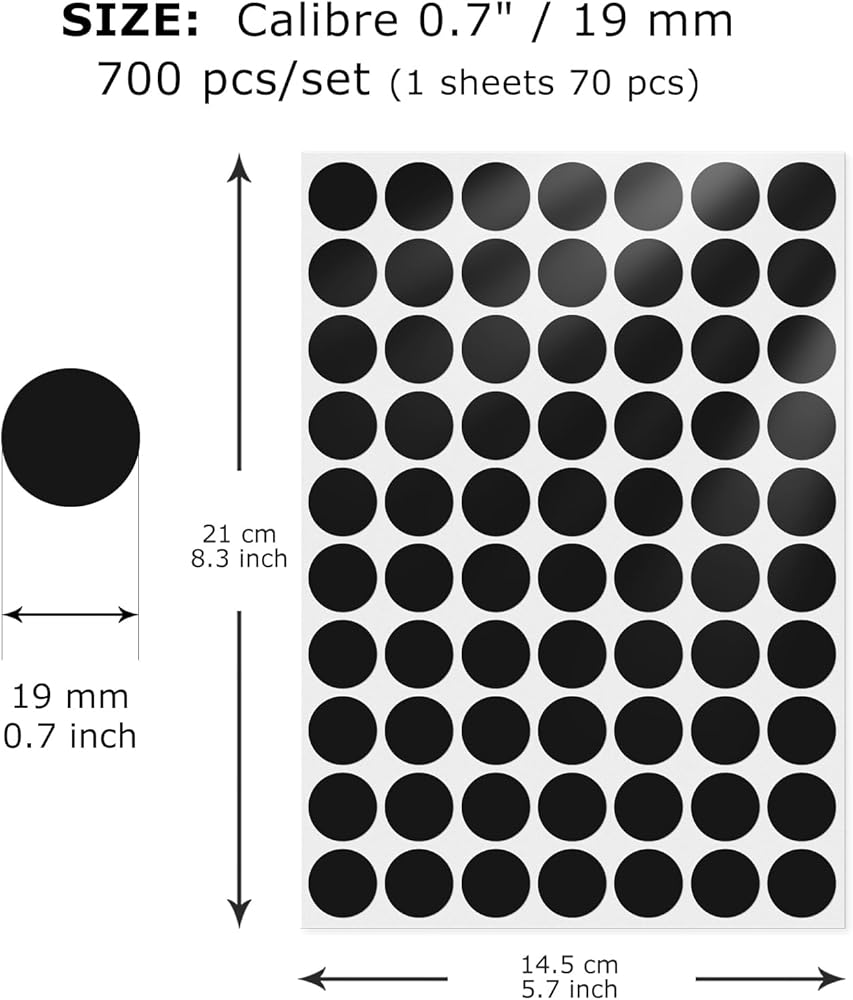 Specification: Dot stickers measure 19 mm in diameter. You will get 700 pieces of stickers in total, 10 sheets per pack and 70 pieces per sheet.
