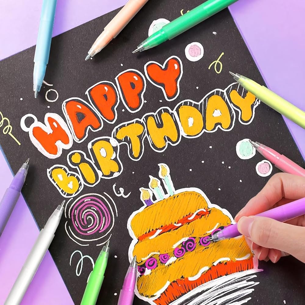 Smooth Writing: 1.0mm muticolor gel ink paint pens fine point bullet tip that ensures smooth writing and painting experiences. The tip rubs against the paper, resulting in even ink output, guaranteeing a flawless finish to your creations.Our pen maintains a consistent ink flow, preventing any interruptions or uneven distribution of ink. This ensures a continuous and smooth writing experience, allowing you to focus on your work without any distractions.