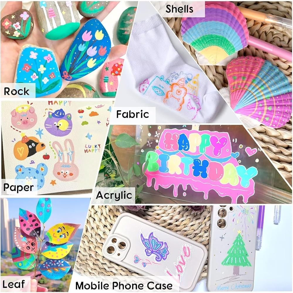 Unlimited Creation: Acrylic gel pen gift set can create unlimited works on any craft supplies, paper, board, ceramics, whether painting, hand account, marking or DIY project can bring people amazing experience, Let your creativity run wild, Explore endless possibilities.