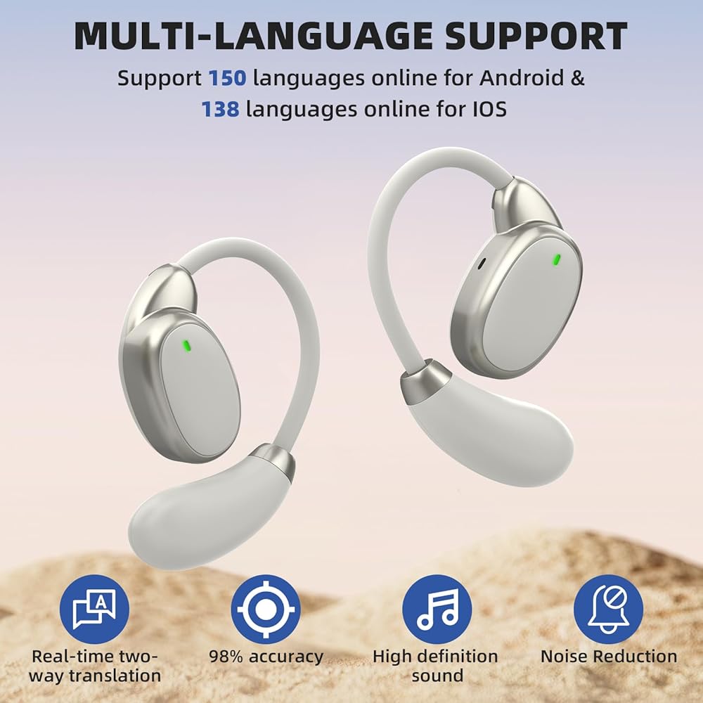 Stylish On-ear Design: Our real time translator earbuds have an ergonomic earbud design that does not need to be tucked into the ear. So you won't have to worry about ear discomfort when wearing the earbuds for a long period of time, regardless of the size of your ears.