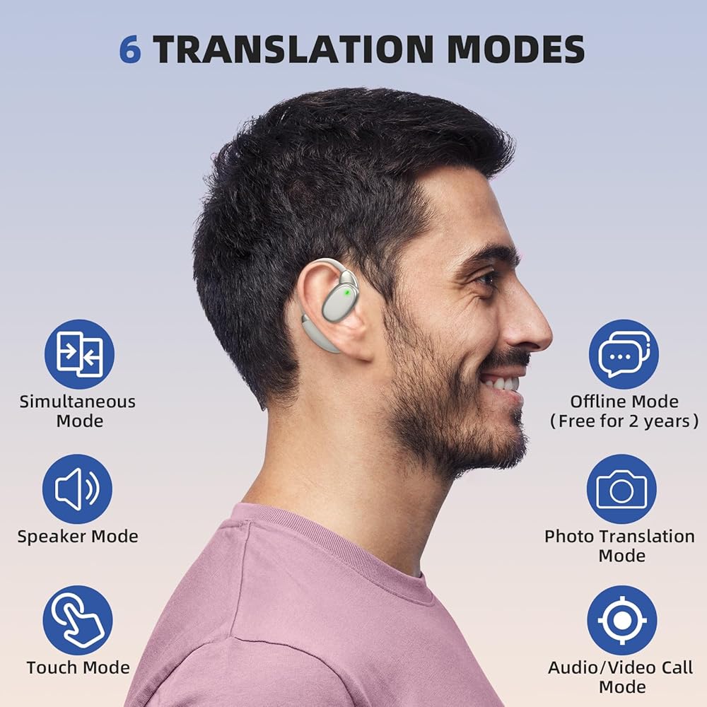 6 Translation Modes: Our language translation earbuds support 6 modes of translation. Including simultaneous mode, speaker mode, touch mode, photo translation mode, offline mode, audio/video call mode. You can choose the right mode according to different scenarios to ensure smooth communication anytime, anywhere.