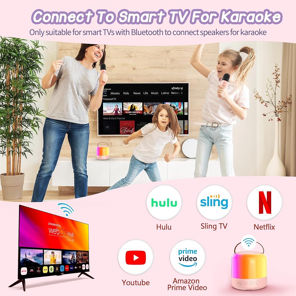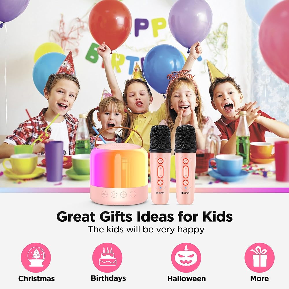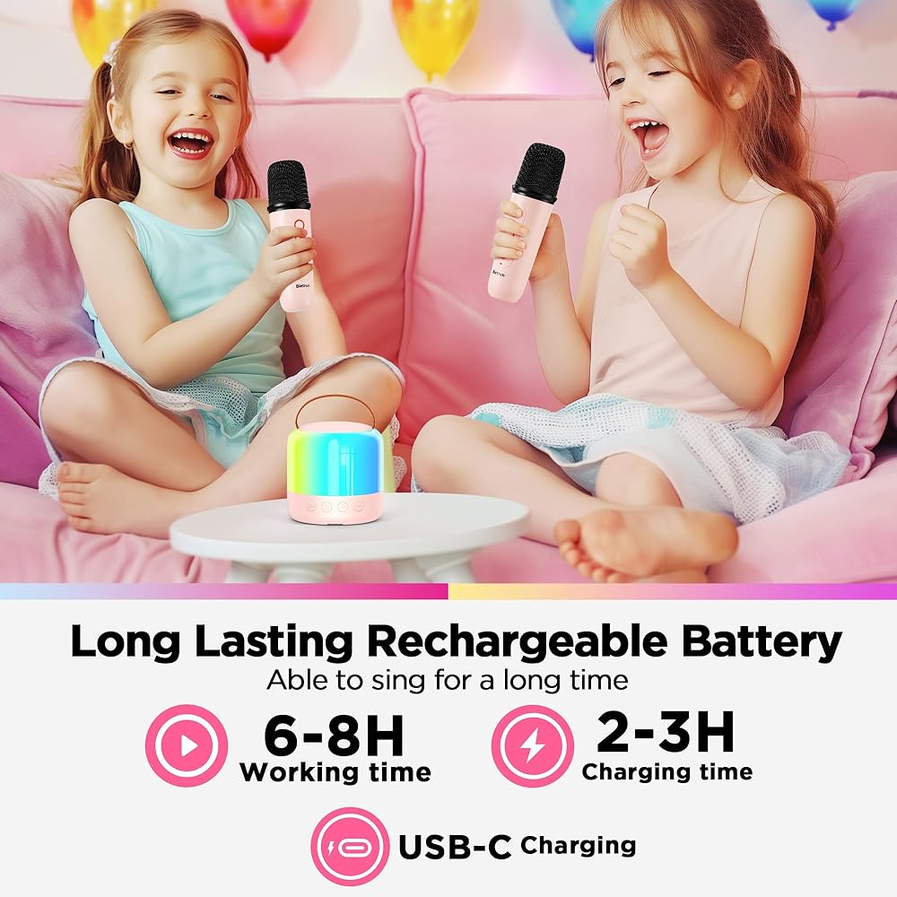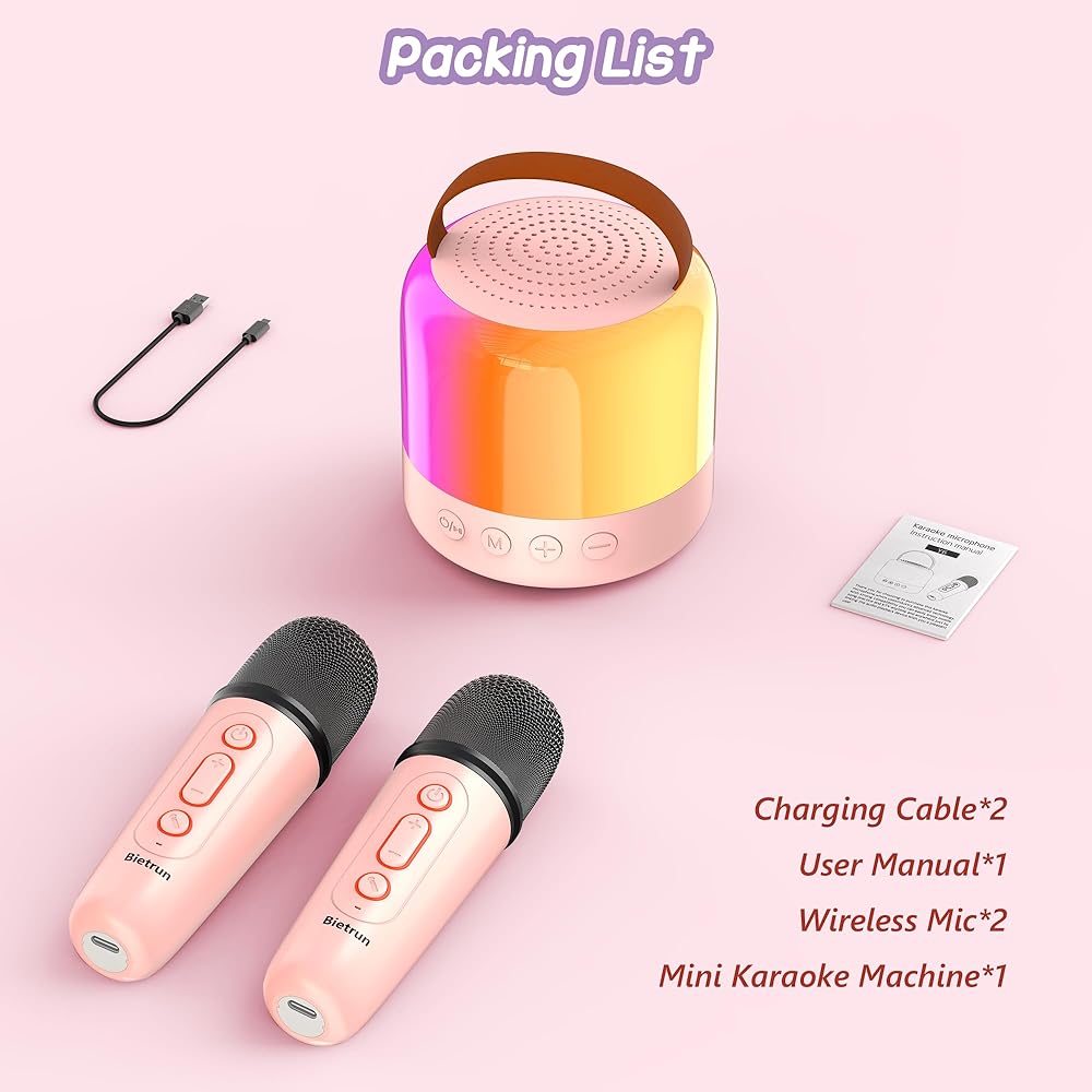 Mini Karaoke Machine with 2 Wireless Microphones for 5 Years Old Kids, Rechargeable Portable Bluetooth Karaoke Singing Speaker with Voice Changing, RGB Light, for Birthday, Family, Home Party Gift