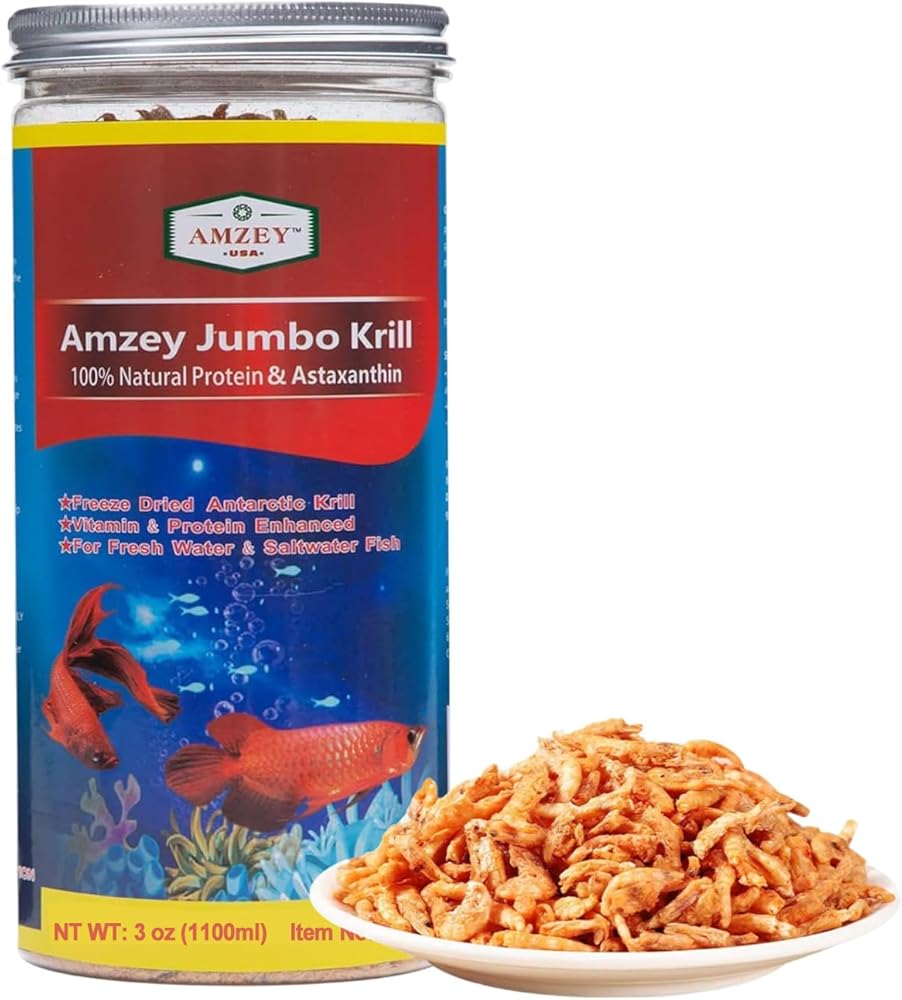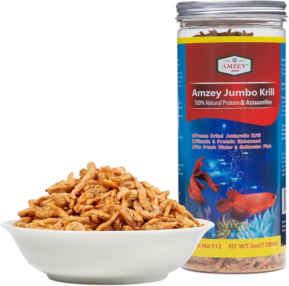 Amzey Freeze Jumbo Krill 3 oz, Dired Jumbo Shrimp Essential Omega-3, Vitamin Enhancement, Super Food for Pets, Cat Food, Dog Food, Fresh and Salt Water Fish