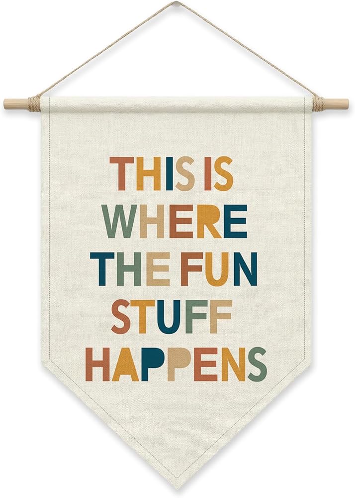 [Premium Quality Materials] Crafted from high-quality cotton canvas, this banner comes with durable twine and a sturdy wooden stick. Its design ensures long-lasting beauty, making it a perfect centerpiece for your playroom walls.