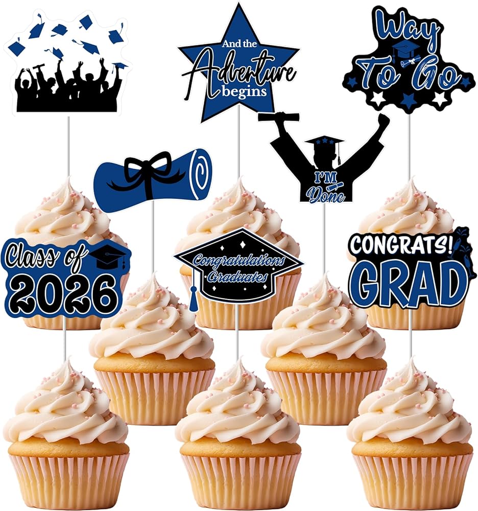 Don't miss out on these graduation decorations class of 2025 cupcake toppers. They are the perfect way to add some flair to your party desserts and make your celebration one to remember. Get your graduation picks for cupcakes today and make your graduation party unforgettable!