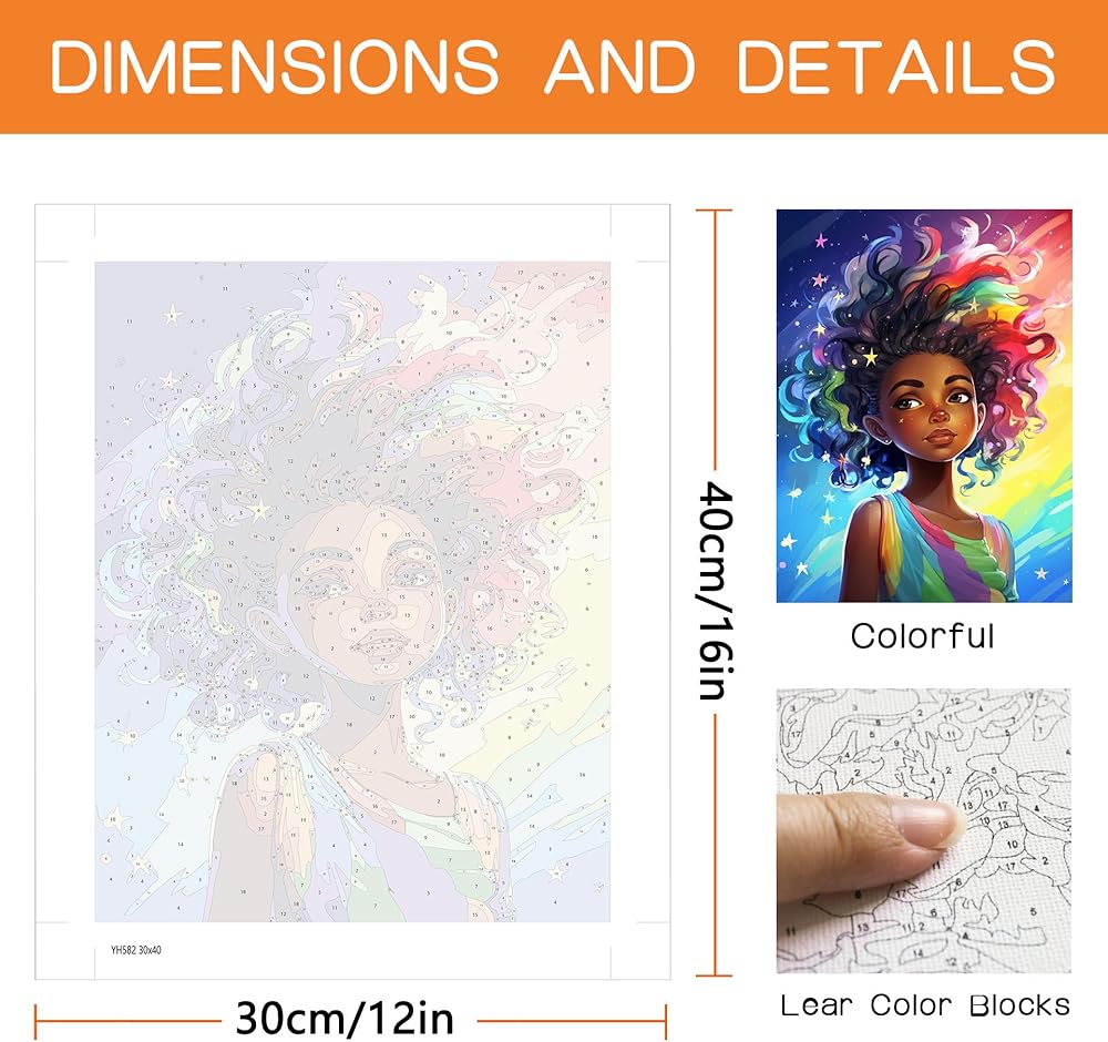 Diymood Paint by Numbers Kits for Adults African American, DIY Oil Painting Africa Acrylic Paint by Number for Adults Beginner with Brushes for Home Wall Decor 12x16 inch