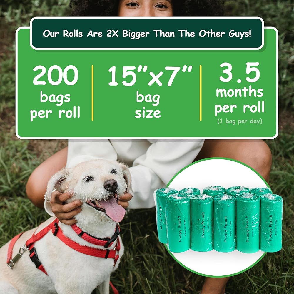 10 Rolls: Includes 10 rolls of 200 poop bags for a total of 2000