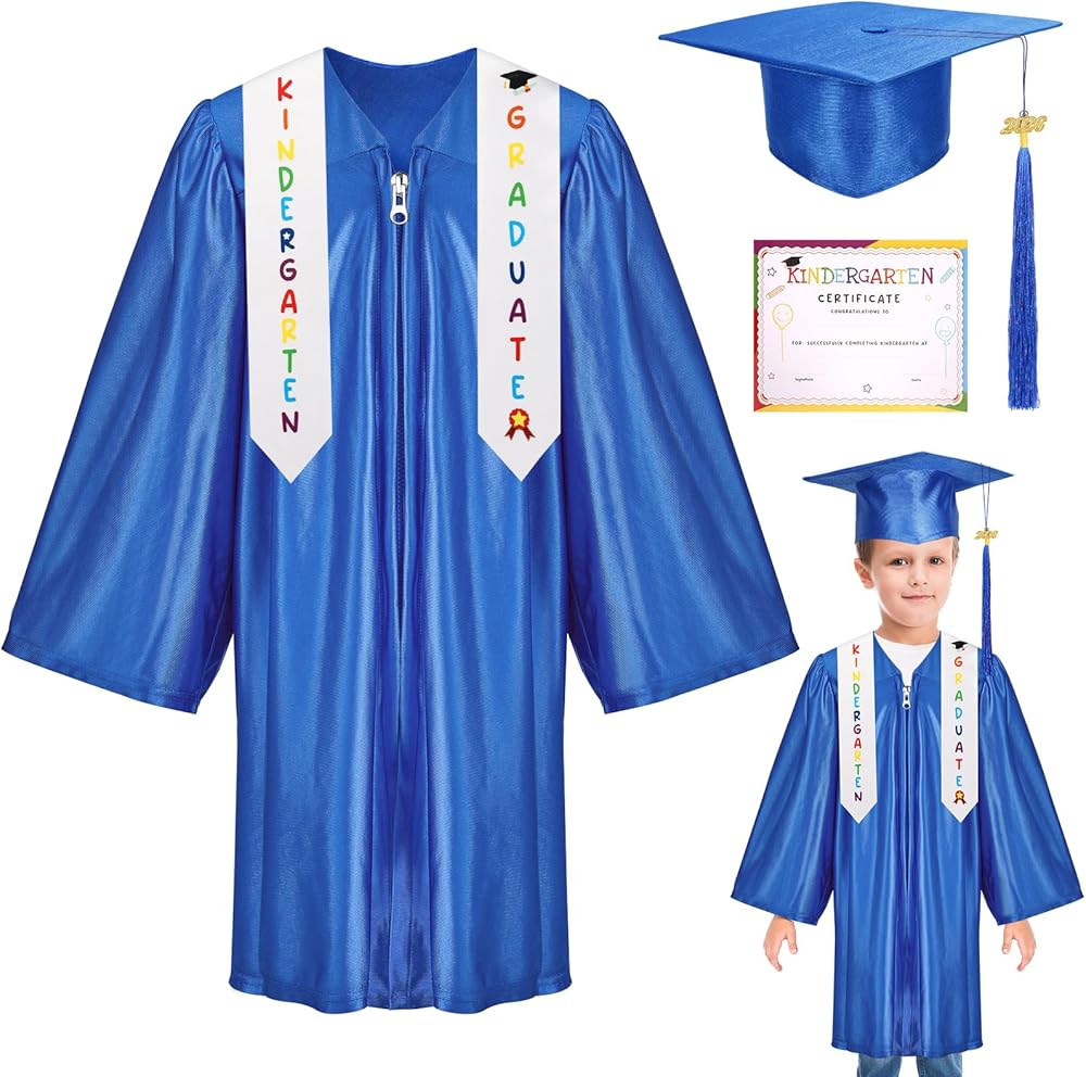 Unisex kids graduation set: The kindergarten graduation set includes a graduation gown, a graduation cap with 2025 tassel, a "Kindergarten Graduate" sash, and a kindergarten graduation certificate, a popular graduation set for kids boys girls kindergarten graduates