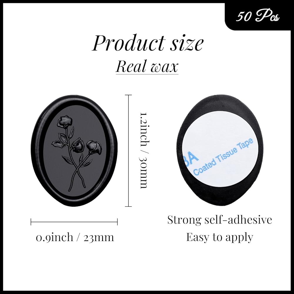 PACKAGE INCLUDES - You will receive 50 pieces of snow white color wax seal stickers in 3D flower oval shape designs. The wax seal sticker diameter is height 1.2 inches & width 0.5 inches and with almost the same size of adhesive on the back. Weighs 0.02oz per seal and may add weight to envelopes.