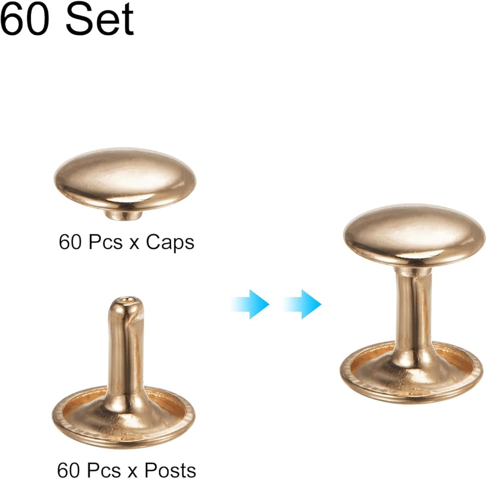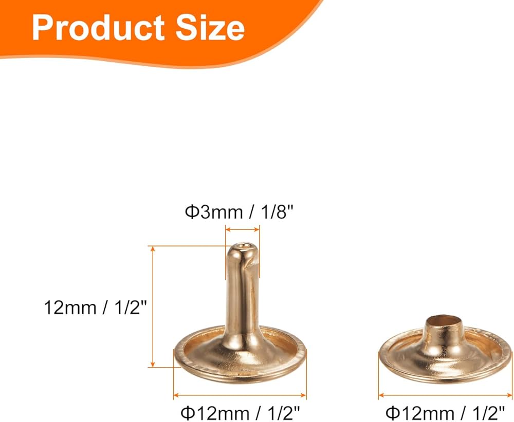 Size - Our leather double cap rivets measure dimensions with a cap diameter of 10mm (approximately 3/8 inch), a tubular height matching at 10mm (approx 3/8 inch), and a tubular diameter of 3mm (around 1/8 inch), ensuring a good fit for your leathercraft needs.