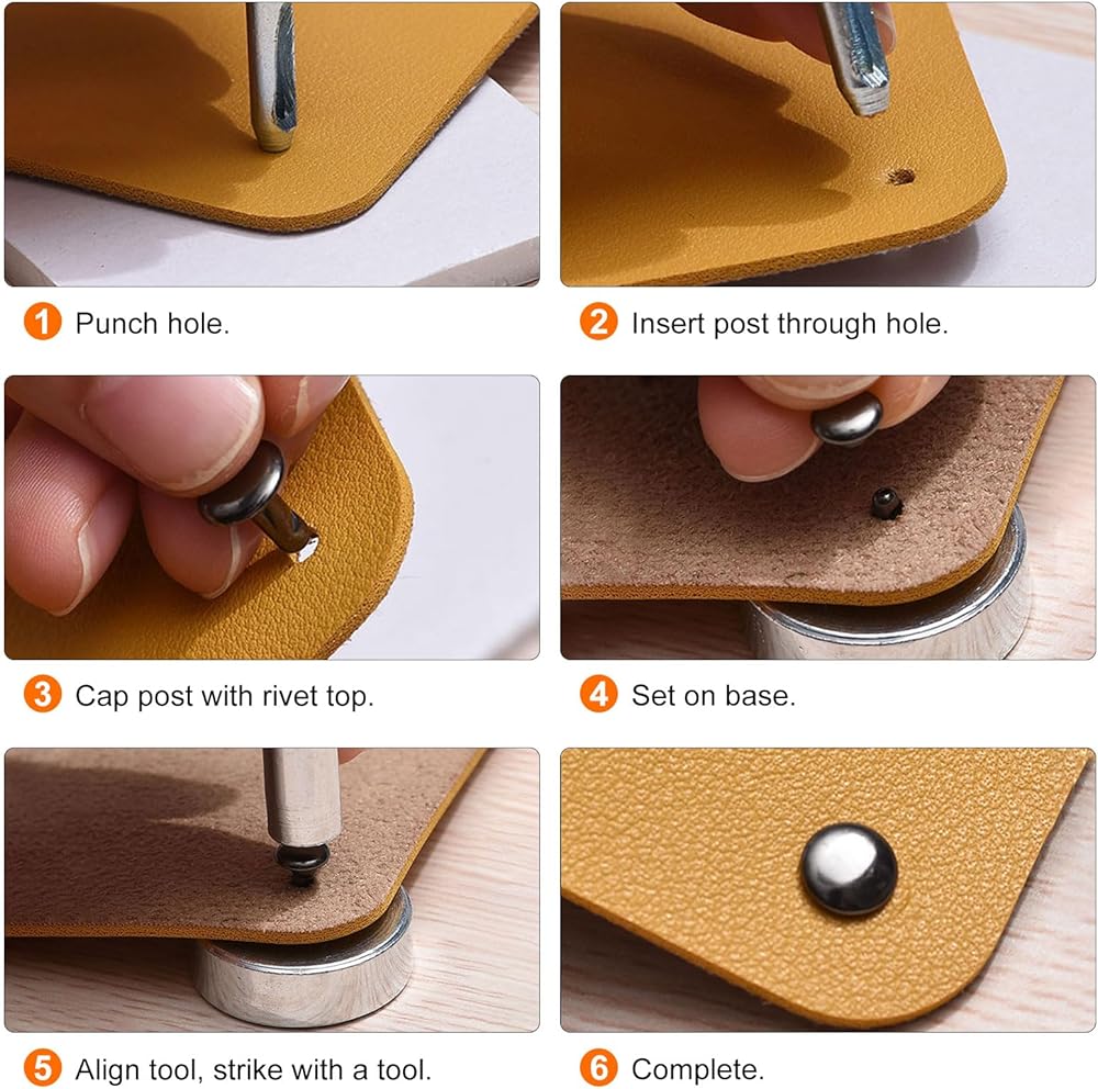 Material - The leather rivets crafted from sturdy carbon steel, ensuring they not only long-lasting but also smooth and free from burrs. Engineered for performance, these round tubular rivets resist wear, and prevent rust, ensuring they remain intact even under repeated stress, without bending or breaking.