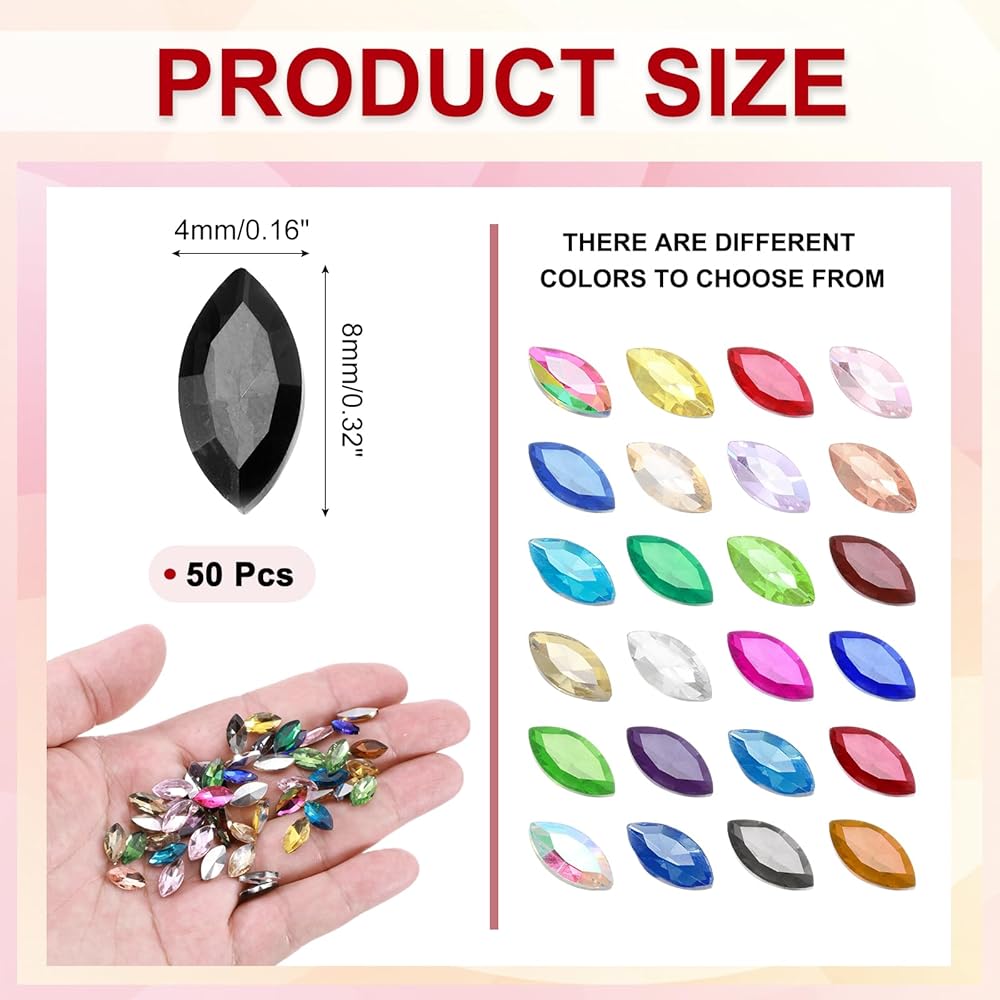 In the Package: 50Pcs x Horse Eye Shape Point Back Rhinestone