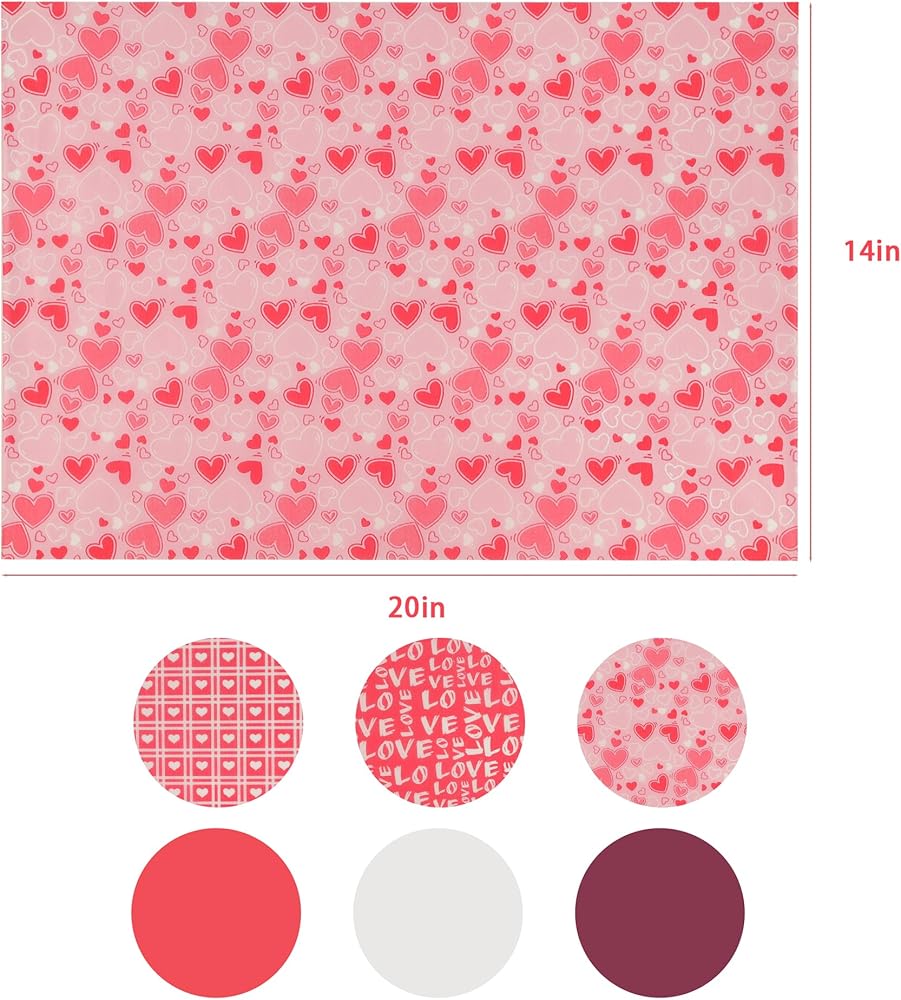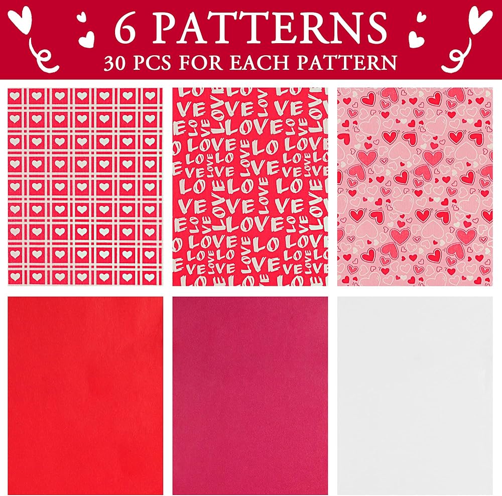 Romantic Design: totally 6 designs, 30 sheets each design. Tissue paper takes red as theme color, assortment of hearts and love wonderful, lovely and cute.