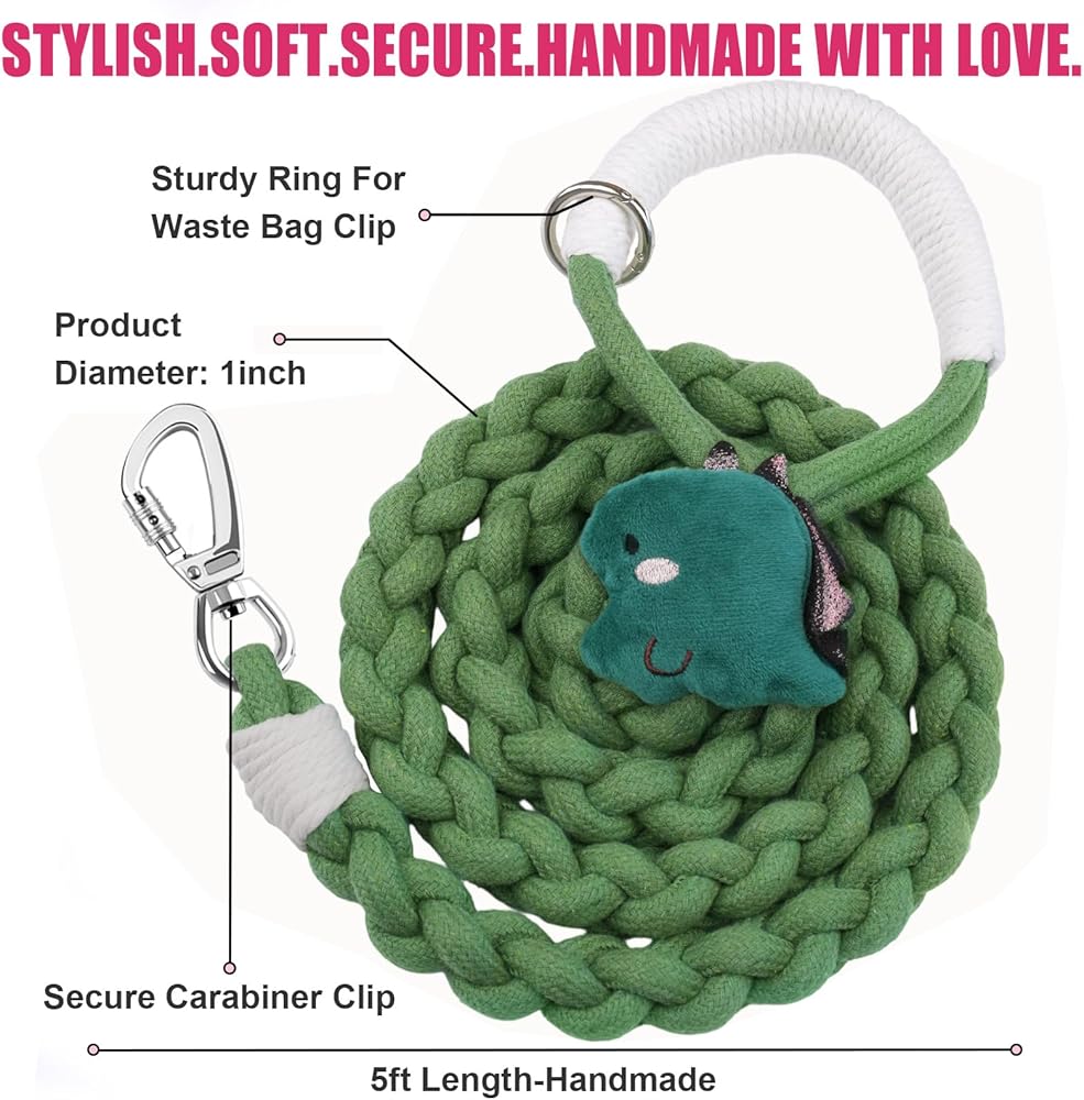 Handmade Braided Design: This 4ft dog leash is crafted from tightly woven cotton rope, ensuring it is strong and durable for daily use. The braided design adds to the leash's strength and aesthetic appeal.
