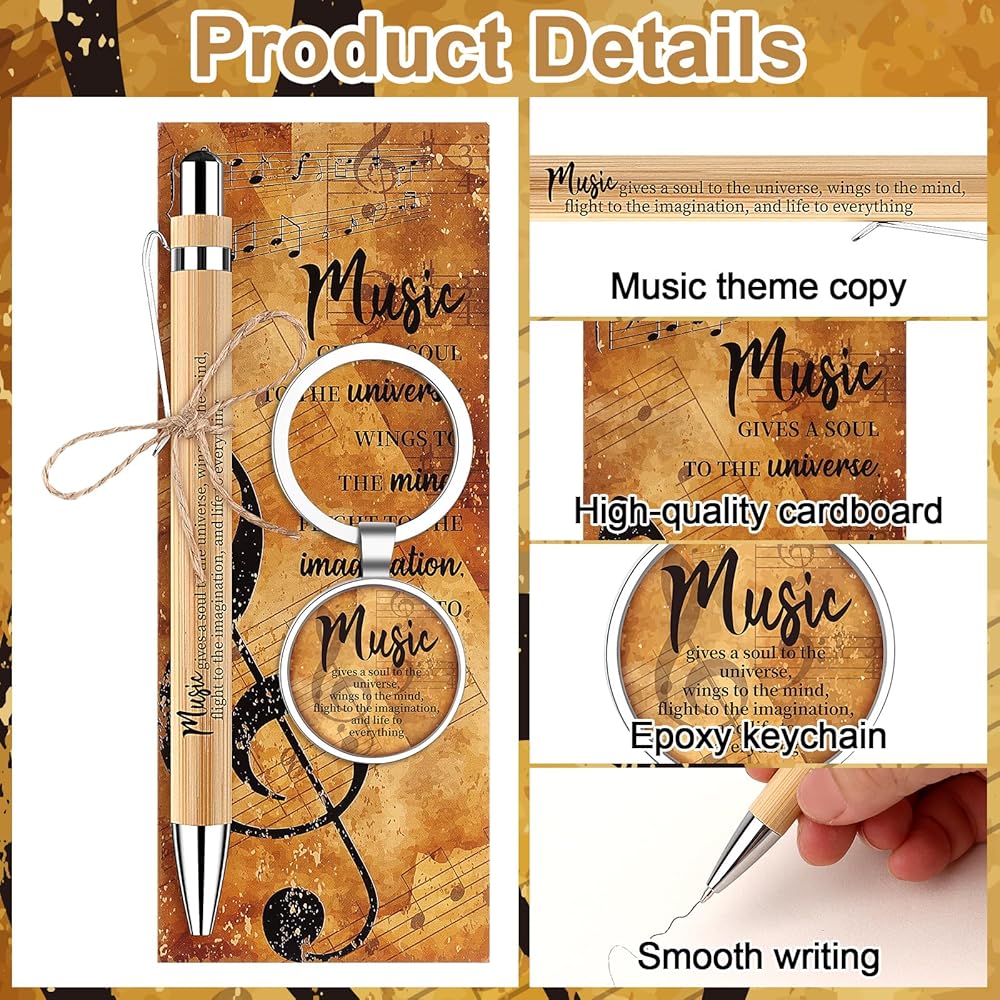 16 Sets Music Themed Gifts Including Wooden Bamboo Pen, Thank You Card, Stainless Steel Key Chain Musical Theme Appreciate Gift Pack Music Gifts for Students Teachers Choir Director