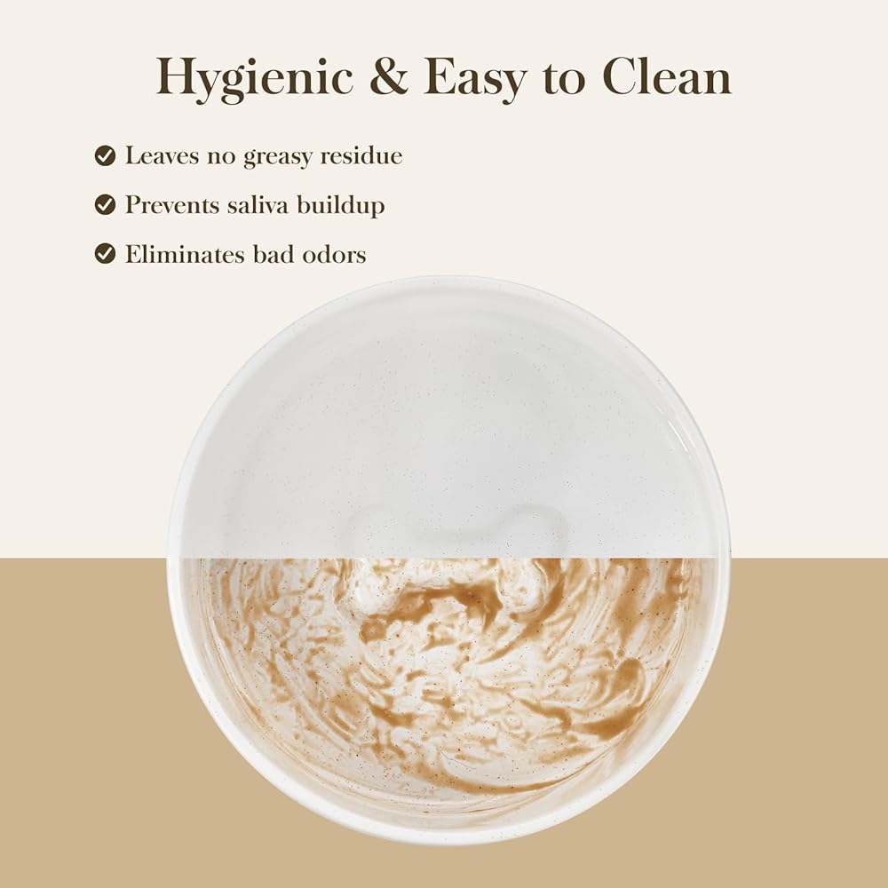 DISHWASHER SAFE: Simplify cleanup with our hygienic ceramic dog food and water bowls designed for busy pet owners, smooth surface finish prevents food residue buildup, non-porous ceramic resists odors and discoloration, maintaining a fresh look even with daily use. Dishwasher-safe convenience-save time with hassle-free dishwasher cleaning.