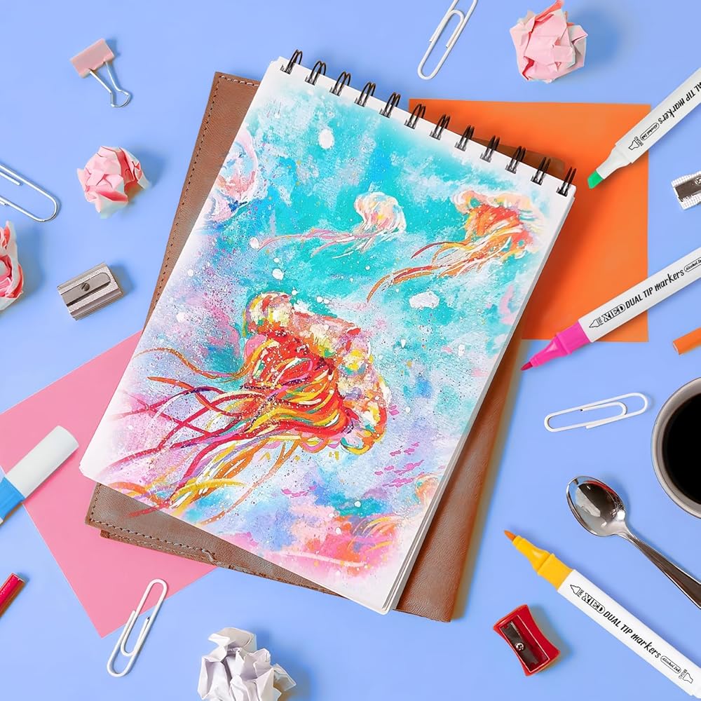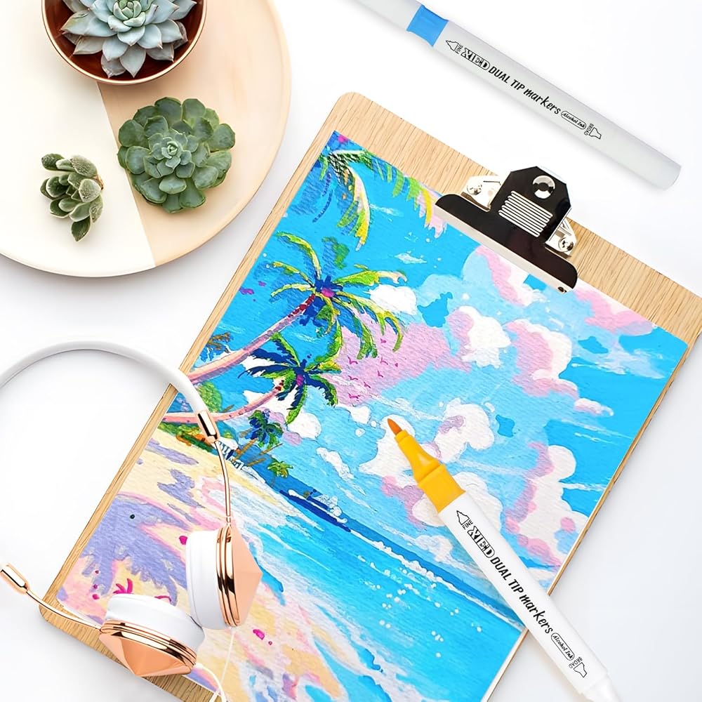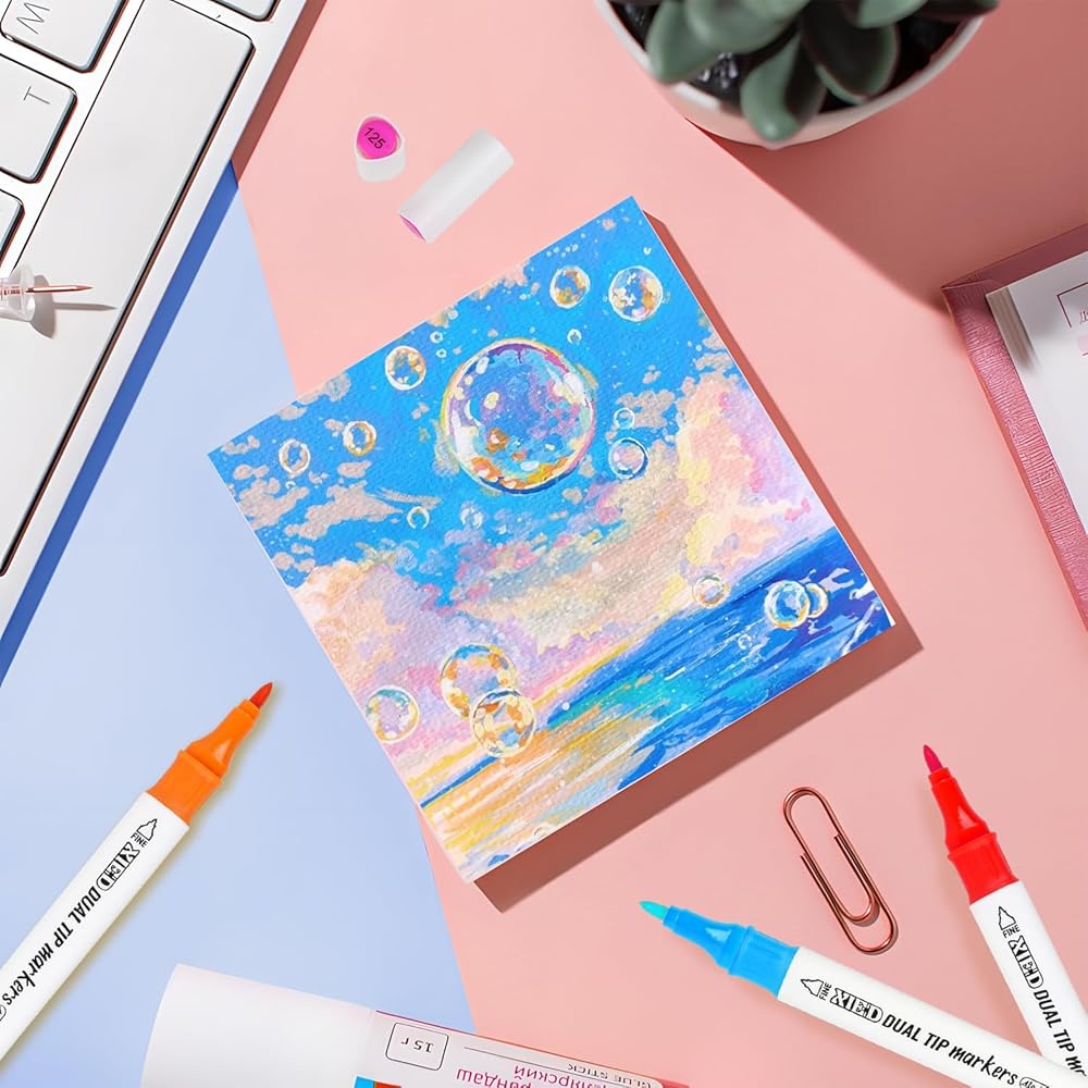 DUAL TIP DESIGN FOR VERSATILITY: Dual-tip design, one of the fine tip for fine depiction. The other of the broad tip, suitable for a large area to lay the color of the broad tip, can be quickly covered. The two tips complement each other to meet all kinds of drawing needs in an all-round way. Each markers has sufficient ink volume to escort your creation throughout the whole process, so that inspiration is not hindered in the slightest .
