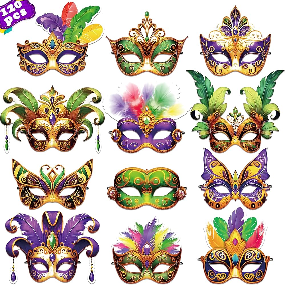 Vibrant and Fun Designs: This 56-piece Mardi Gras mask set features a colorful assortment of eye-catching masks, great for bringing the festive spirit of carnival to your celebration. Each mask is designed to add a touch of glamour and mystery to your party