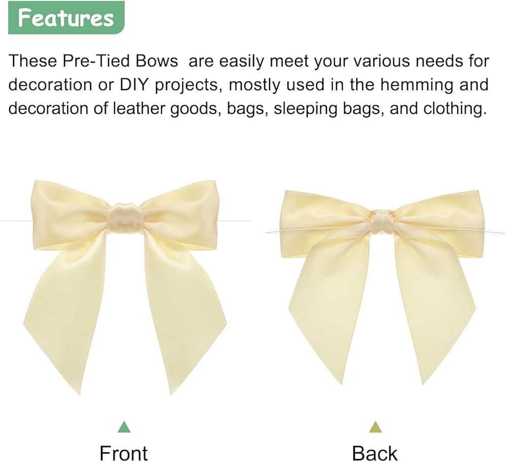 These Pre-Tied Bows are easily meet your various needs for decoration or DIY projects, mostly used in the hemming and decoration of leather goods, bags, sleeping bags, tents, and clothing. These vibrant crafted bows are designed to be both sturdy and can be used over an extended duration.