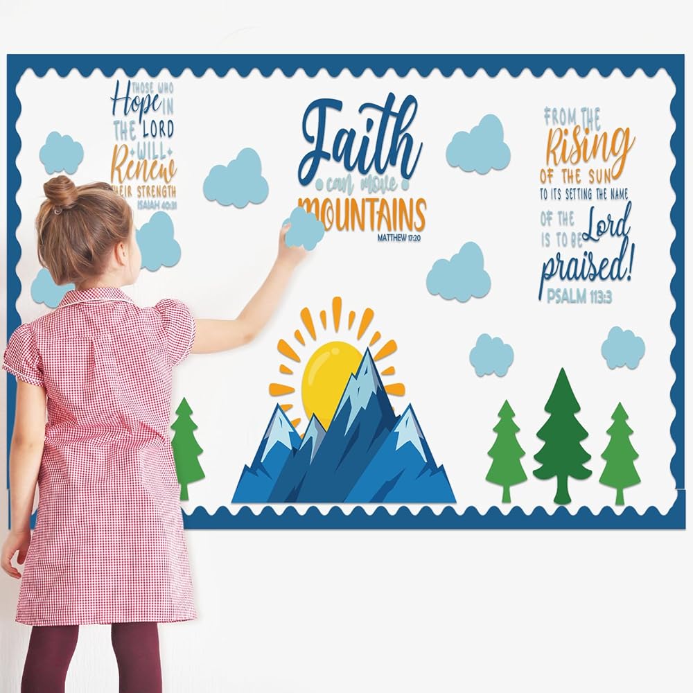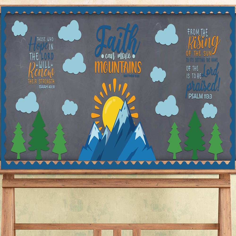 Discover the joy with our beautifully crafted Faith can move mountains bulletin board decorations set, ideal for classrooms, libraries, parties and more, also can serve as gifts for others.