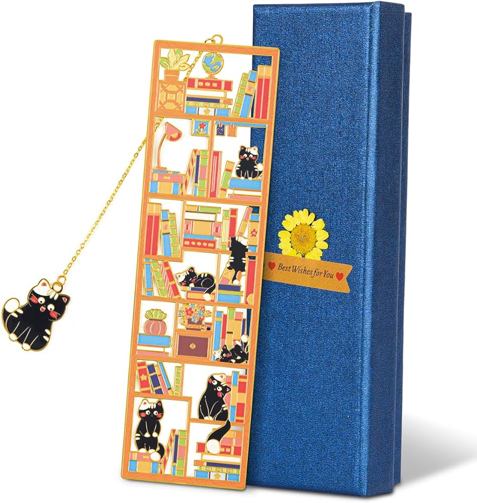 Black Cat Metal Bookmark with Charm and Gift Box, Bookmarks for Women, Reading, Book Mark Gifts for Cat Lover, Teacher, Graduation, Reader, Book Lover, Friends, Bestie, Mom, Dad