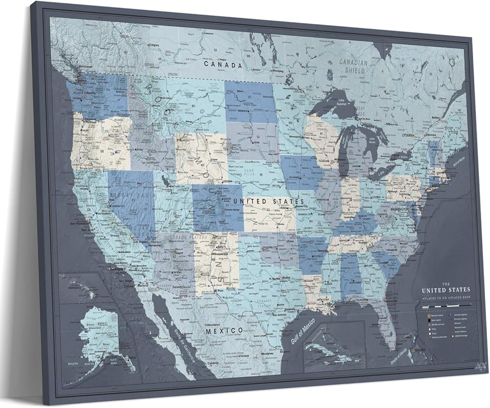 Track Your USA Adventures: Mark the places weve been map you've explored and plan future trips with this beautifully detailed USA map on canvas. It's a meaningful way to celebrate your journeys and look forward to new adventures across the United States.
