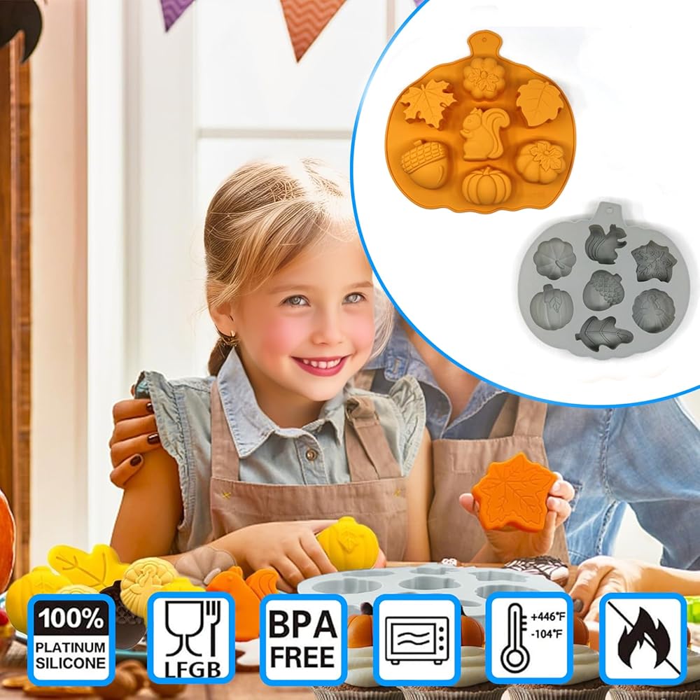 Wide Application - Fall silicone molds work for chocolates, candies, ice cubes, soaps, candles, jellies, puddings, fudge, crayons, and DIY crafts. Ideal for creating festive treats during autumn, harvest time, Halloween, and family activities, popular with kids