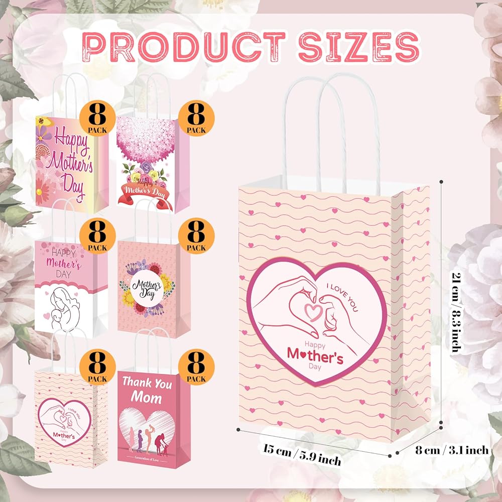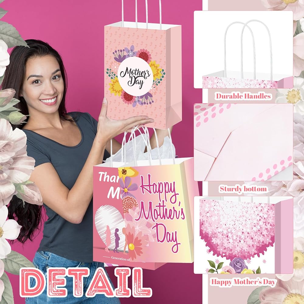 Featuring a delightful pink color that symbolizes love and appreciation, our Mother's Day gift bags are nice for expressing your affection. Their visual appeal is certain to make your gift more special and cherished.