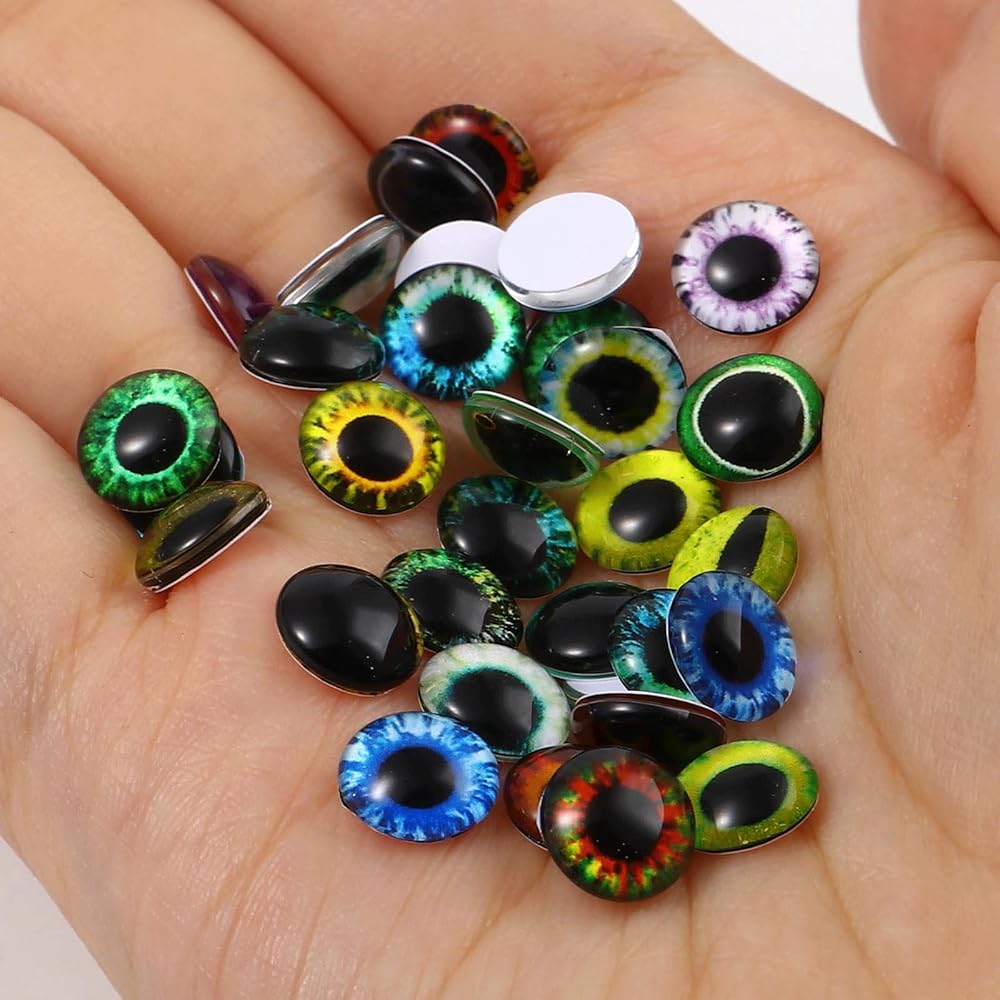 【Great Value】You will get 150 pcs 6mm eyes glass cabochons stickers in different styles. The eye pattern can be widely used as animal doll's eye like cat, dragon, snake, etc.